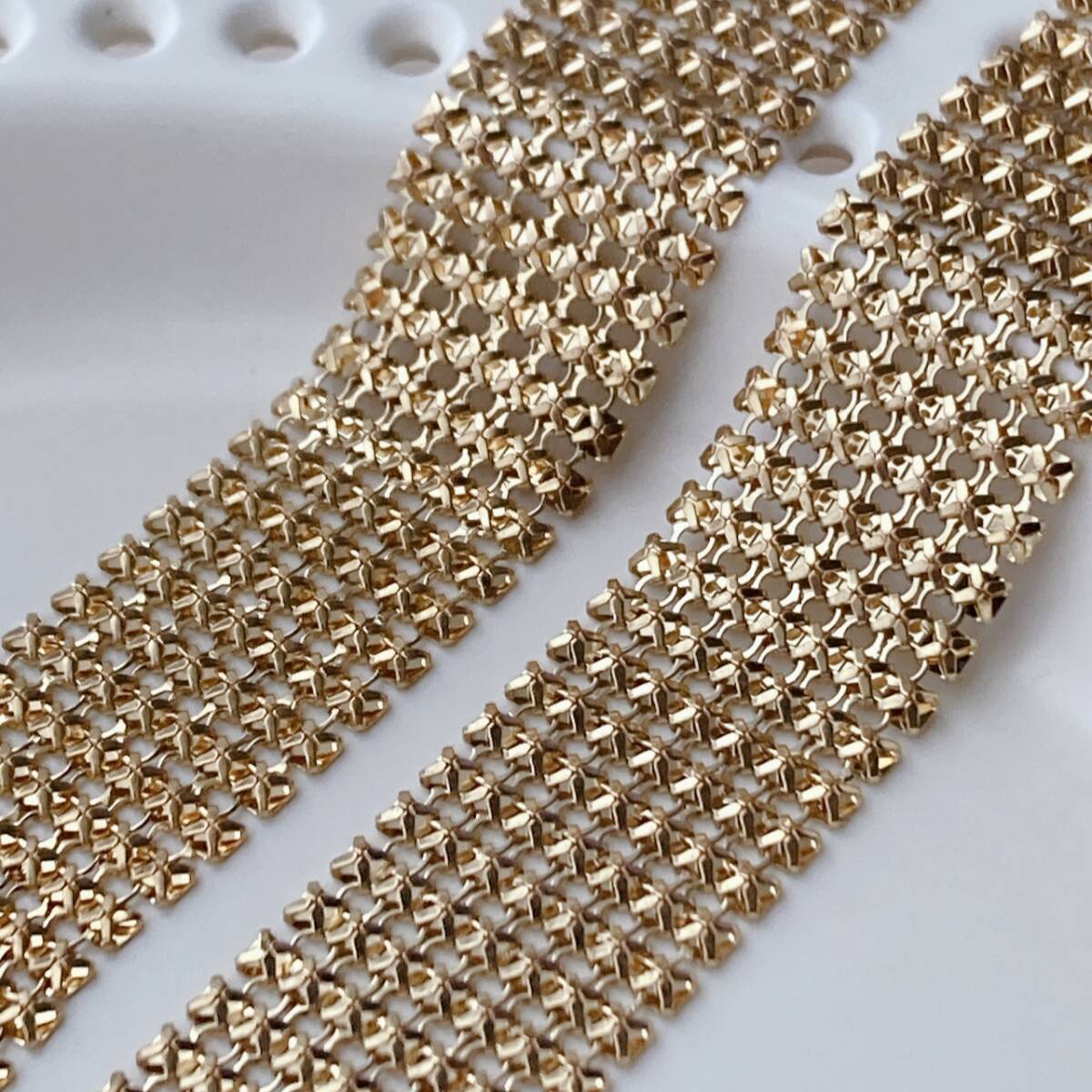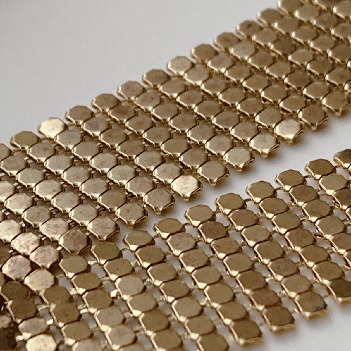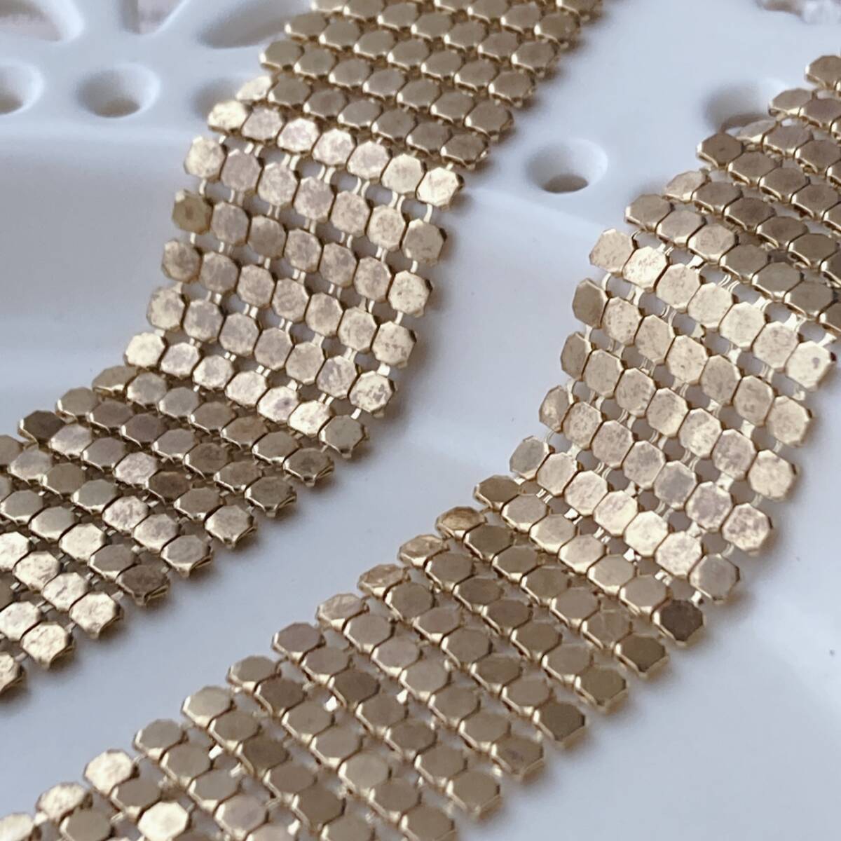 ネックレス ショート ゴールドトーン V字幅広 メタルメッシュ アンティーク調 美品☆vintage jewelry accessories F0197