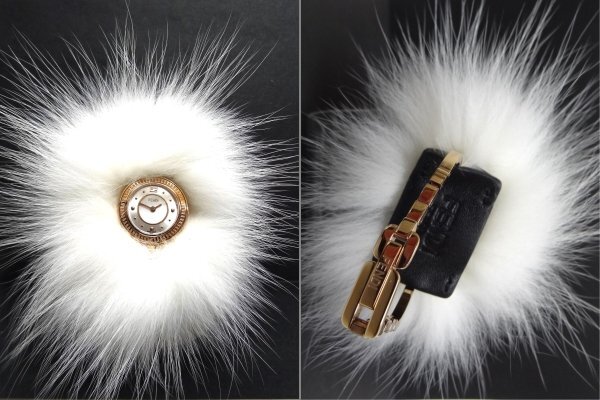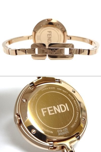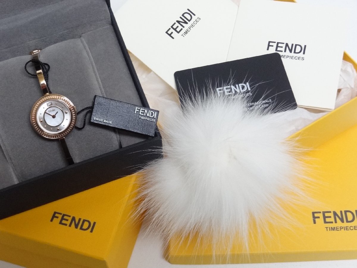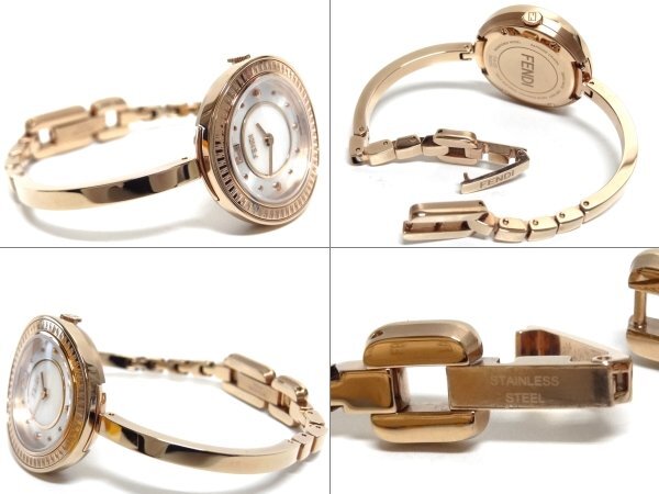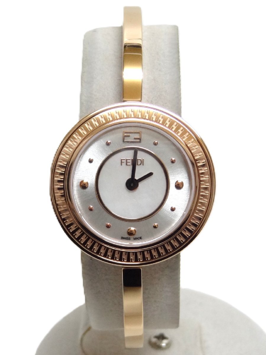 稼働品 FENDI MY WAY フェンディ マイウェイ クォーツ ホワイトシェル×ピンクゴールド ファー付き F378524500 レディース腕時計 ☆