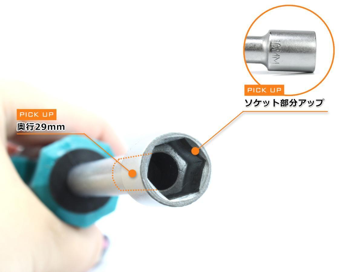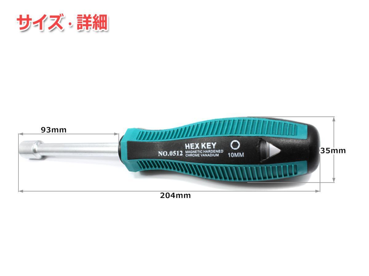 六角ソケットドライバー ナットドライバー 芯深タイプ 10mm(M6)