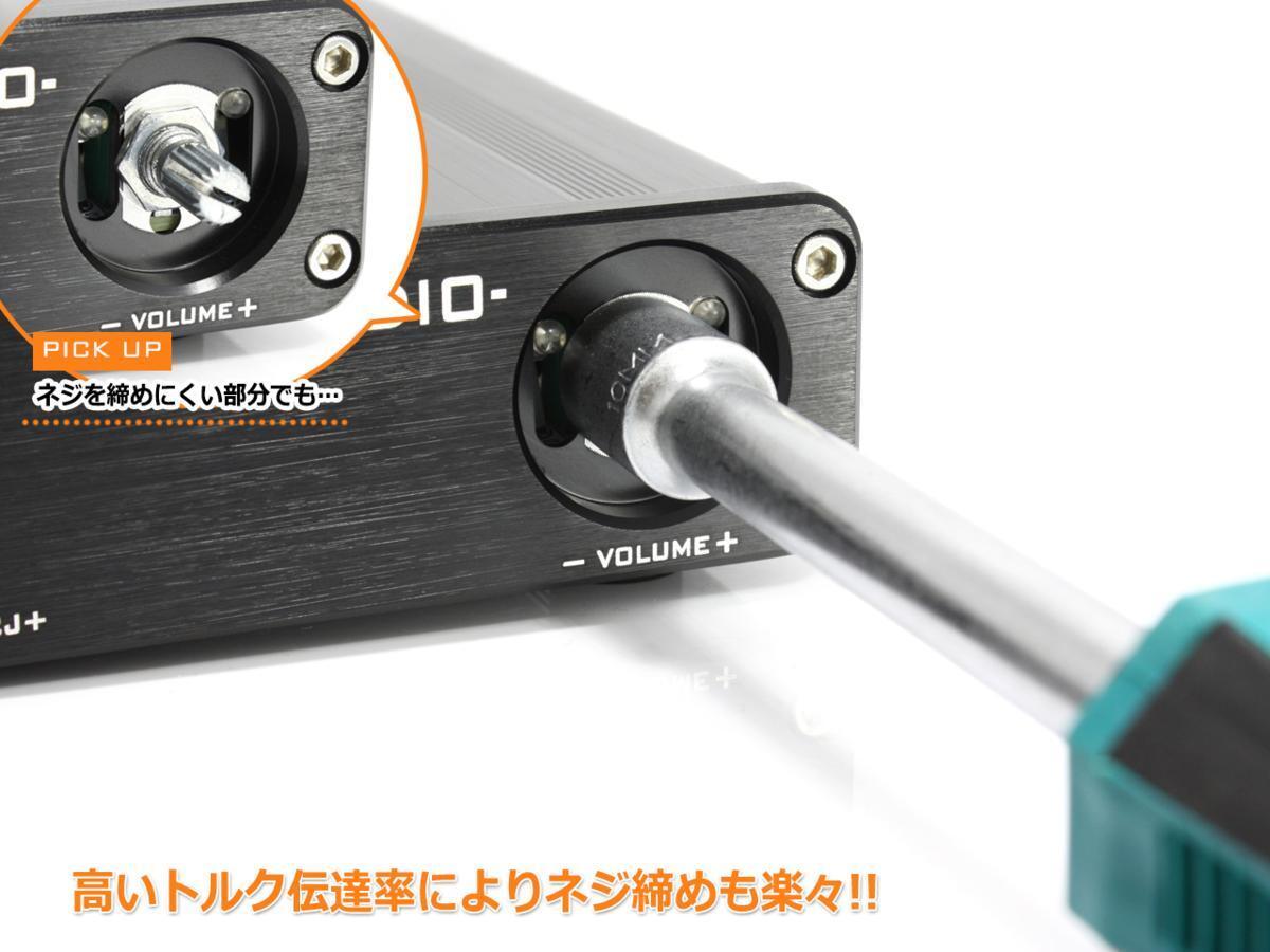 ソケットドライバータイプなので、弊社製品のボリューム固定部などの狭い場所でもお使いいただけます。
