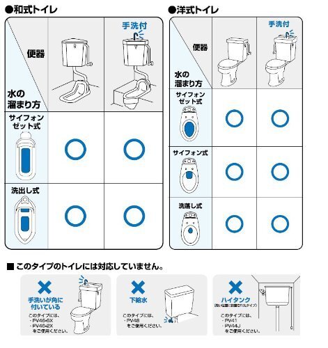 サイフォンゼット式やサイフォン式の便器には補助水管付のボールタップをお選択