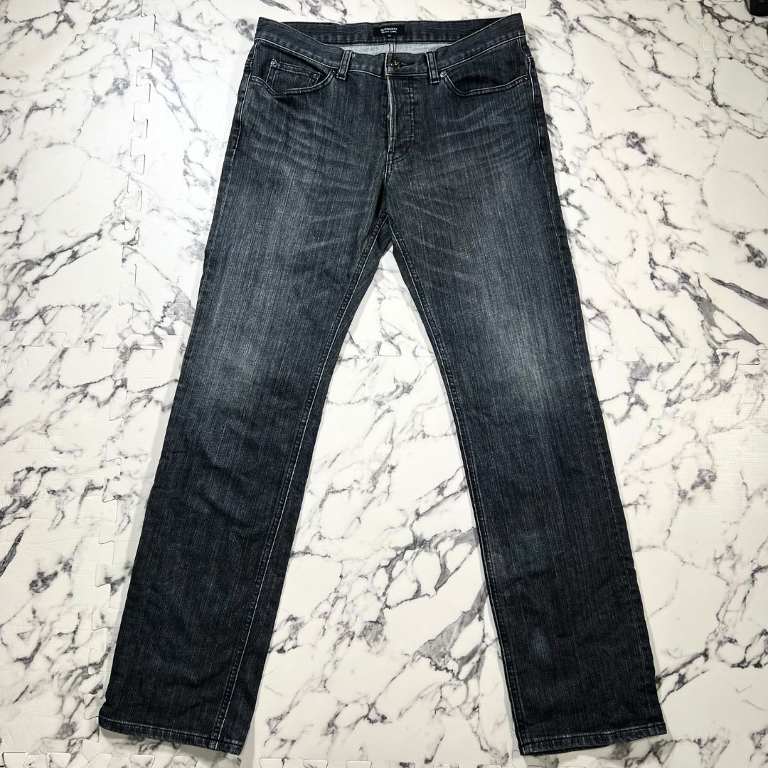 日本市場向けに展開され、高い人気を誇ったバーバリーブラックレーベルからの一本。全体はグレーブラック調の落ち着いた色味で仕上げられており、ヴィンテージ感と都会的な雰囲気を併せ持つ絶妙なカラーリングが魅力です。生地にはストレッチ素材を使用しており、スマートなシルエットながらも快適な履き心地を実現。タイトめのラインが脚をすっきりと見せつつ、伸縮性に優れているため日常使いでもストレスなく着用できます。バックにはブランドを象徴するロゴ入りのレザーパッチを配置し、高級感をプラス。さらにポケット部分にはホースロゴ刺繍や刻印が施され、シンプルながらディテールにまでこだわりを感じさせる仕上がりです。サイズはL相当で、ジャストでもややゆとりを持たせた着こなしでも対応可能。カジュアルにスニーカーと合わせるのはもちろん、ジャケットやレザーシューズと組み合わせれば上品な大人カジュアルを演出できます。やや色あせやパッチのひび割れ等はございますがクリーニング済で清潔です。長くご愛用いただける一本。バーバリーらしい洗練されたデザインと実用性を兼ね備えた、ワードローブに加えたいアイテムです。