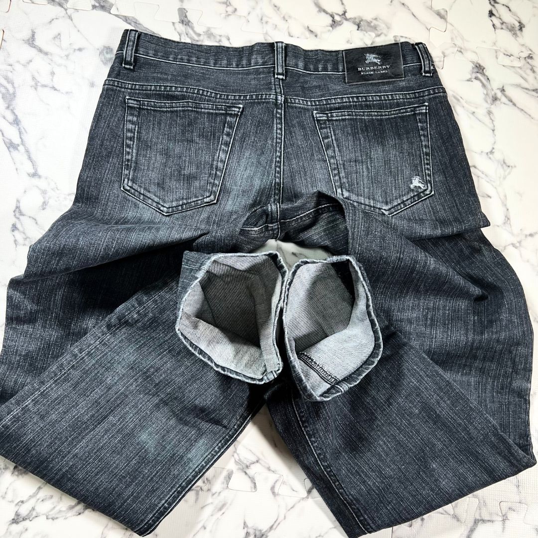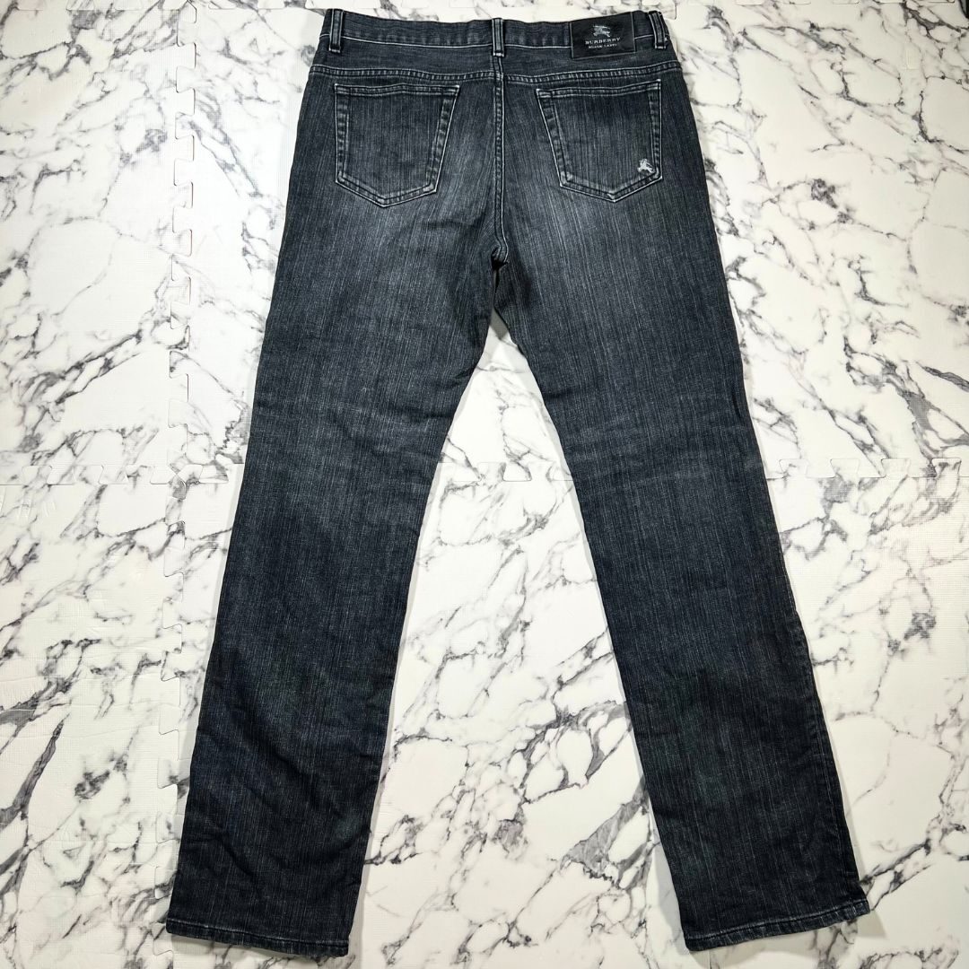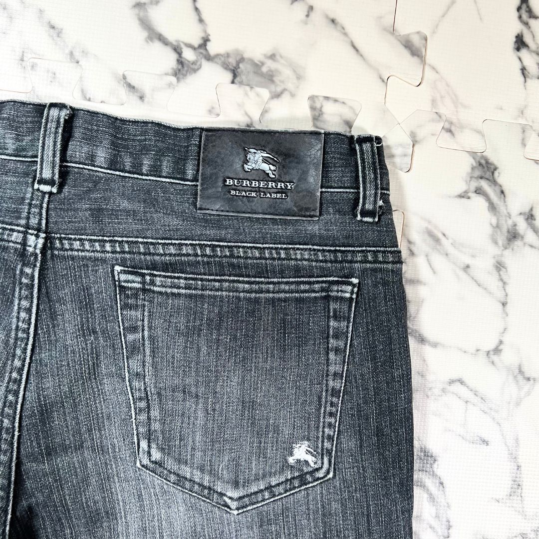 ストレッチ素材/ロゴ革パッチ(L)●BURBERRY デニム ジーンズ パンツ グレーブラック 黒 ホースロゴ刺繍 刻印 バーバリー ブラックレーベル