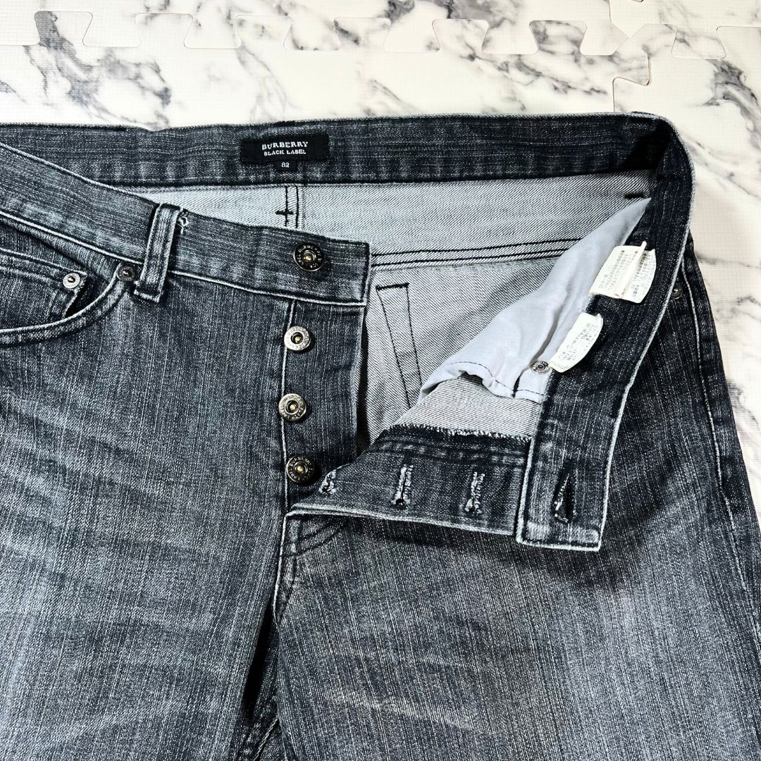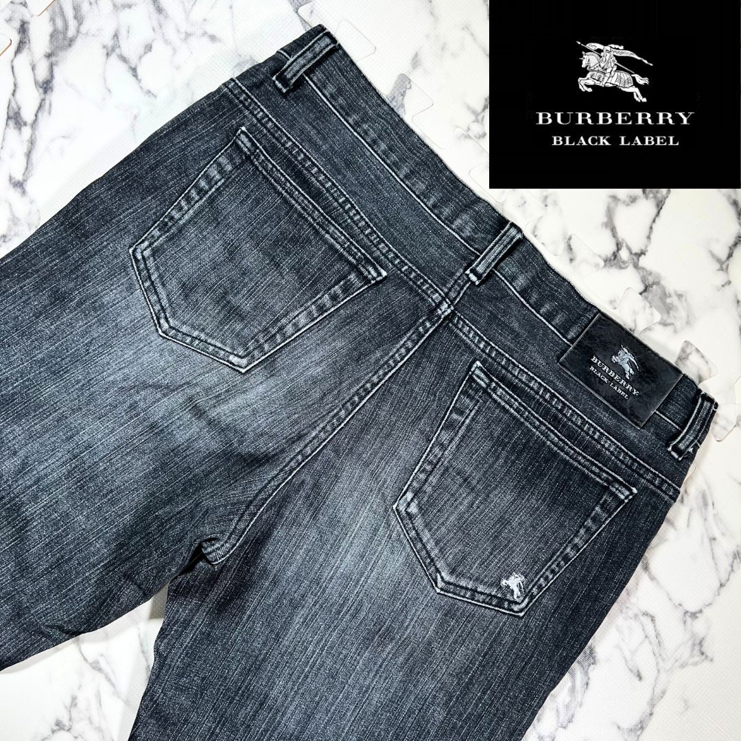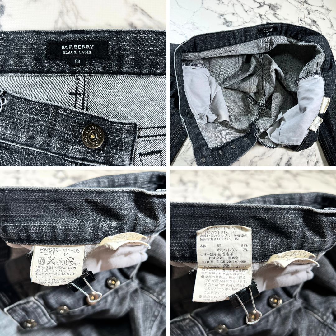 ストレッチ素材/ロゴ革パッチ(L)●BURBERRY デニム ジーンズ パンツ グレーブラック 黒 ホースロゴ刺繍 刻印 バーバリー ブラックレーベル