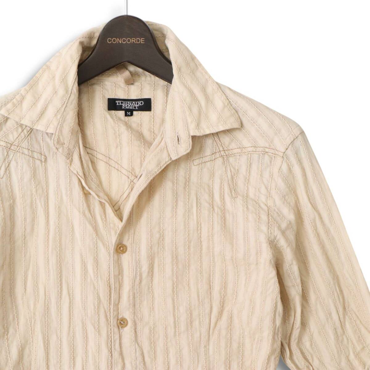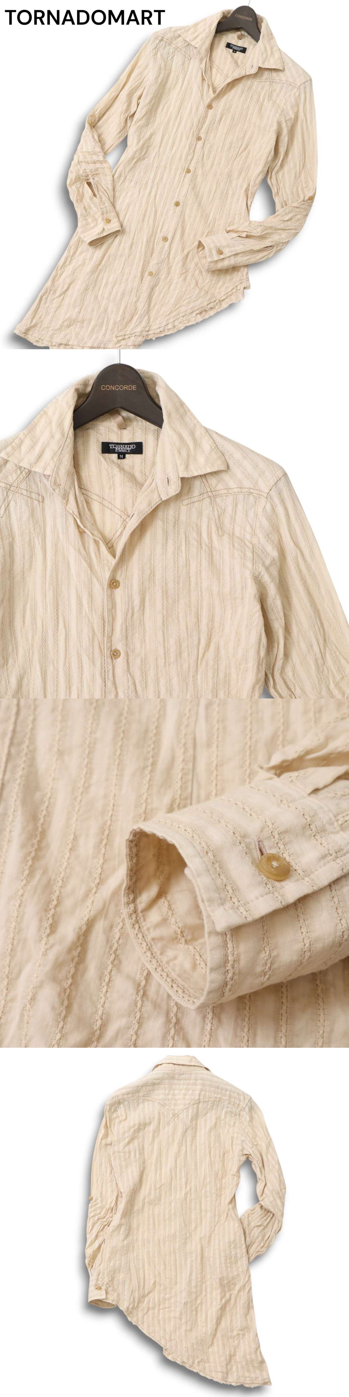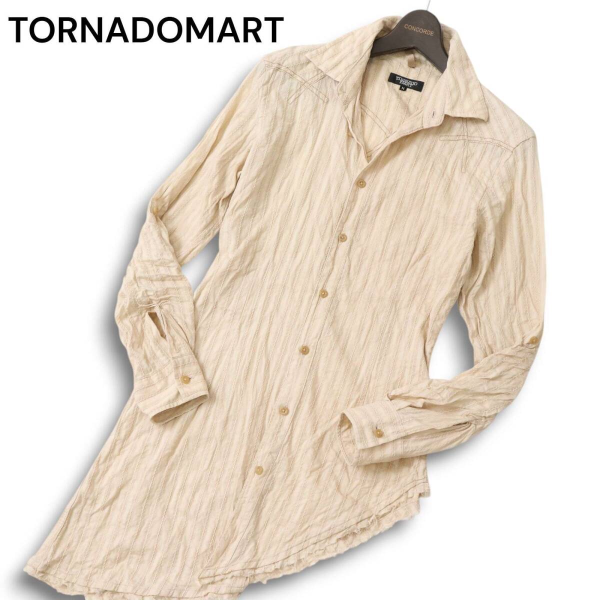 【00s★Y2K VINTAGE】TORNADOMART トルネードマート 通年 アシンメトリー★ 長袖 ストライプ ドレープ シャツ Sz.M メンズ