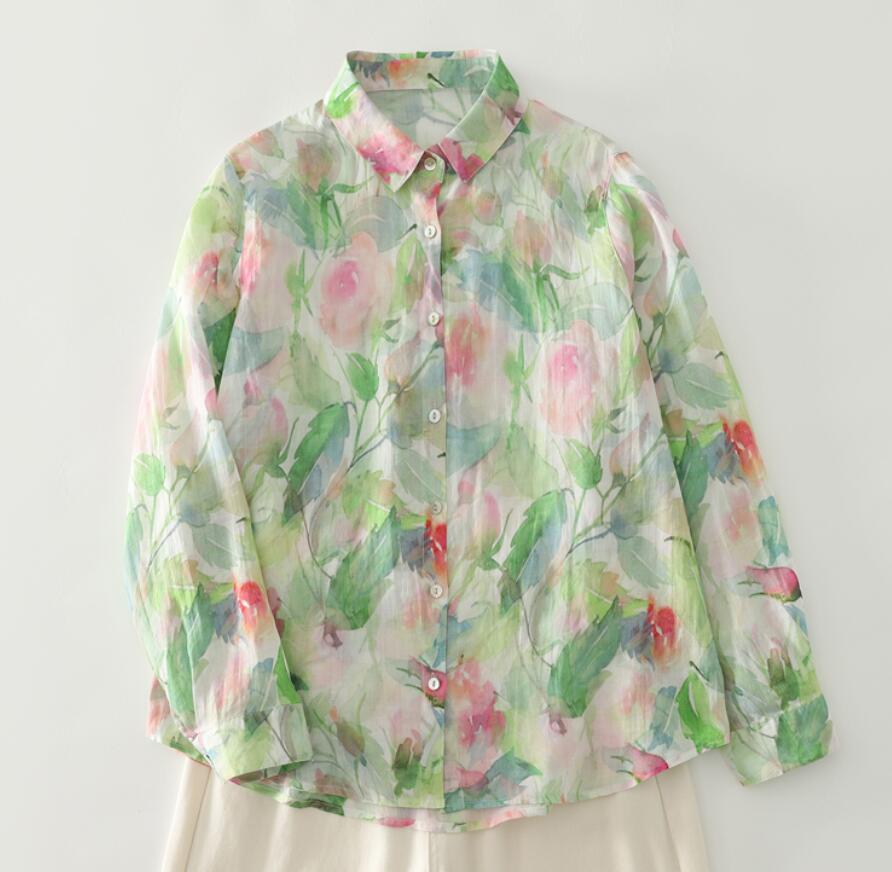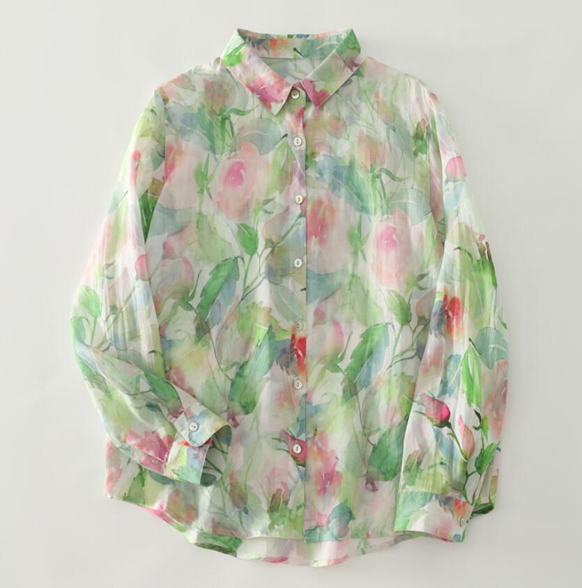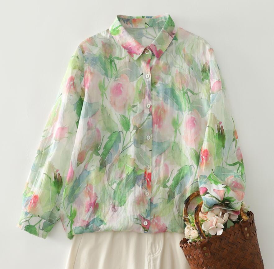 新入荷~カジュアル ゆったり 花柄 シャツ ブラウス きれいめ プリント トップス 着痩せ 長袖 シャツ ゆったり 大きいサイズ 普段使い