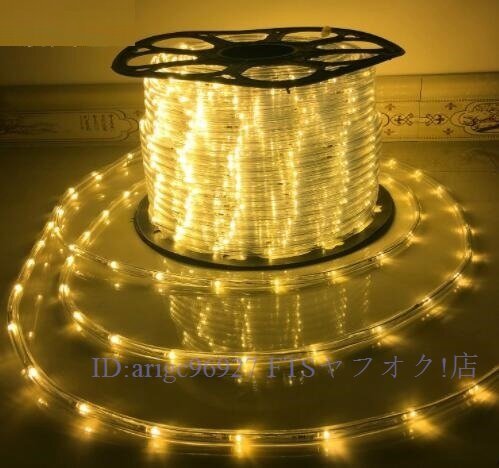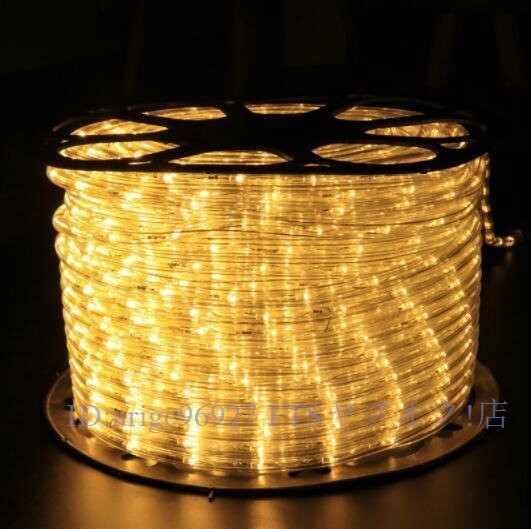 ★新品イルミネーション LED ロープライト 50M 防水 電飾 黄 イルミ 屋外 クリスマス 収納リール 8種点灯 電源コントローラー付