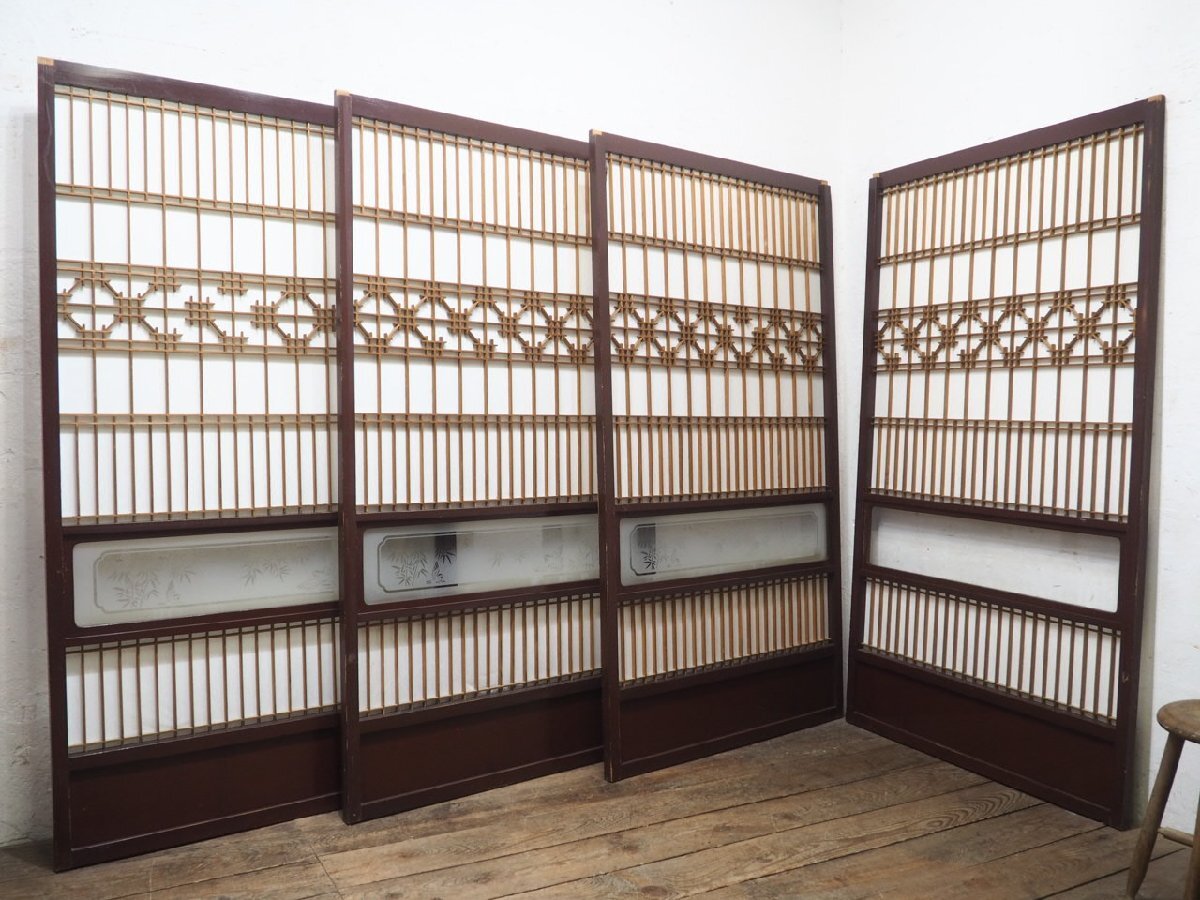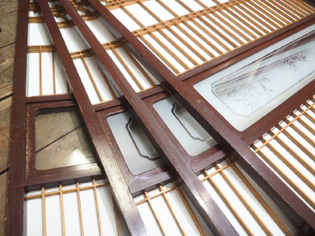 タW1474◆②【H177cm×W98cm】×4枚◆素敵な組子細工のレトロな大きい障子戸◆古建具 引き戸 ガラス戸 古民家再生 アンティークN松