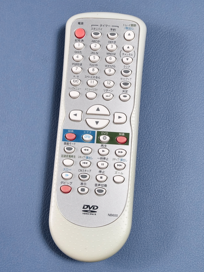 フナイのDVD/ビデオデッキ用リモコン「NB600」の中古品です。