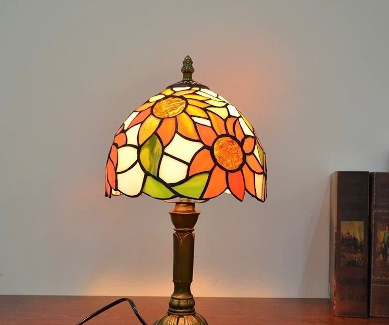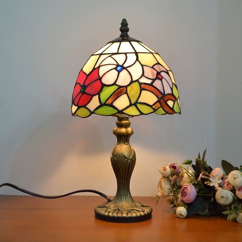 ステンドランプ ステンドグラス デスクライト 花柄 照明 ランプ レトロな雰囲気 ティファニー技法 室内装飾