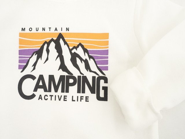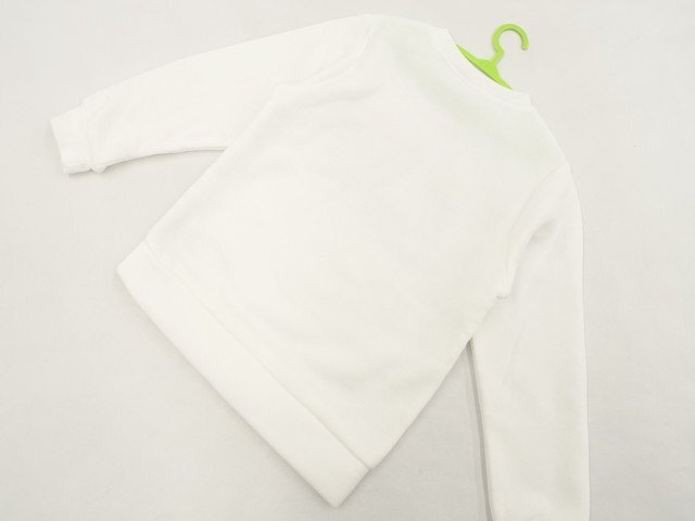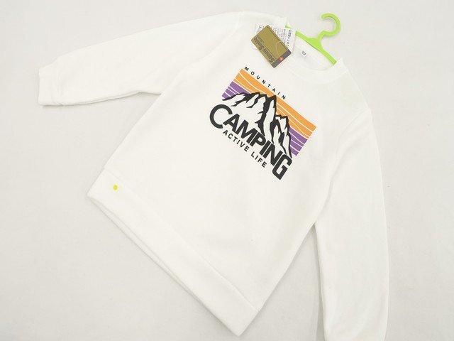 長袖 クルーネック 裏起毛トレーナー 120 ホワイト地 ブラック 英字&マウンテン