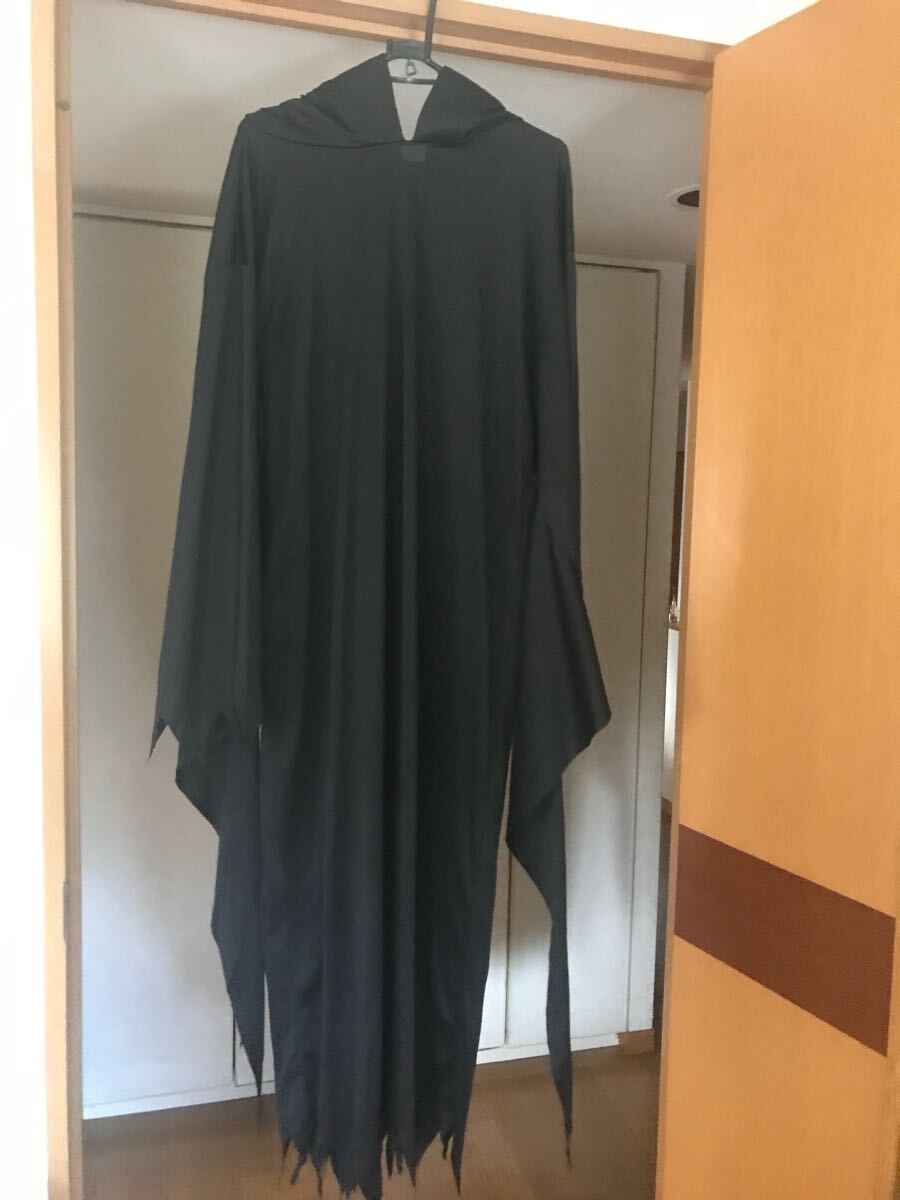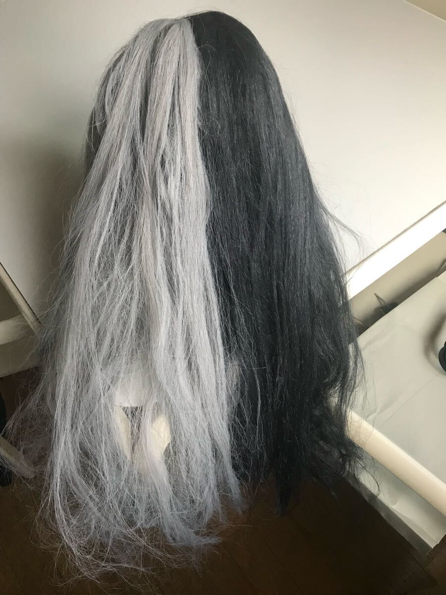 魔女、もしくは悪魔のコスチューム、ウィッグ付き。