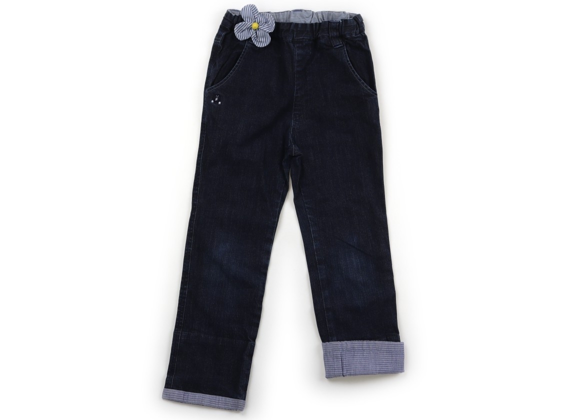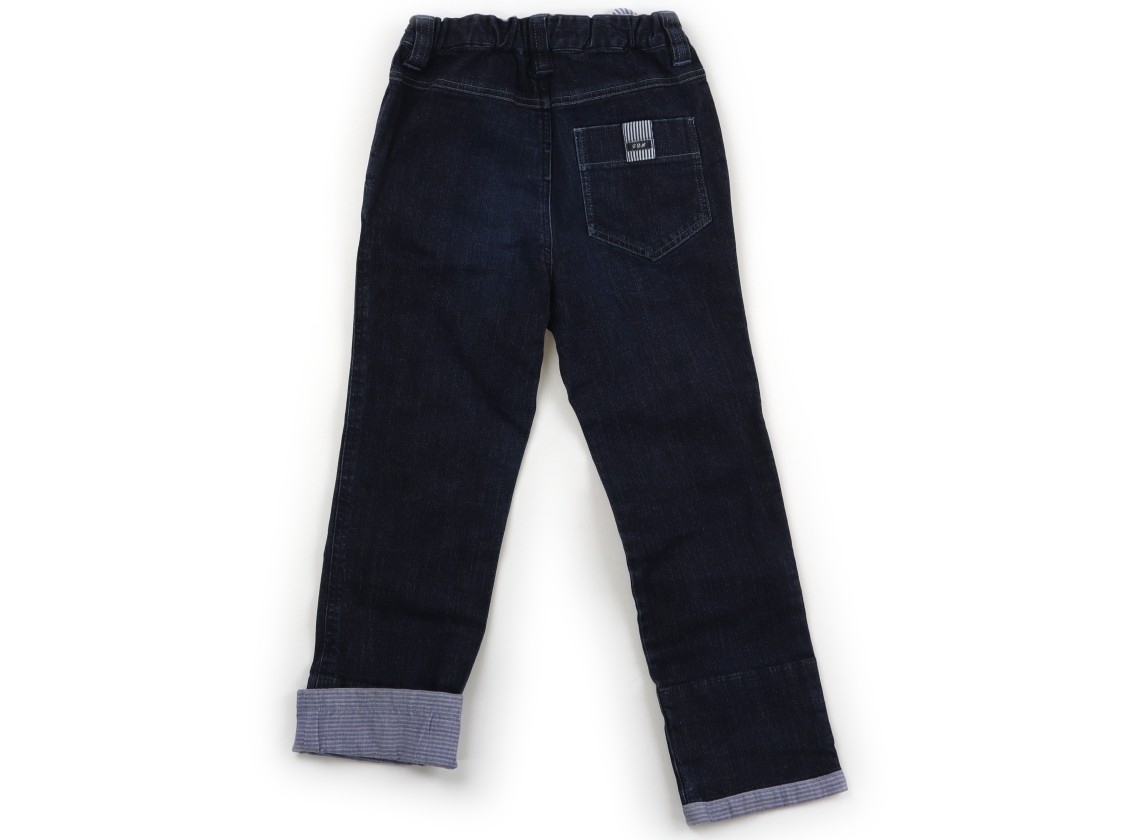 ストレッチデニム、ウエストはサイズ調整ゴムが付いています。F.dashです。品質タグが二つ付いています。裾に薄汚れ、膝とお尻に色褪せと擦れがあります。