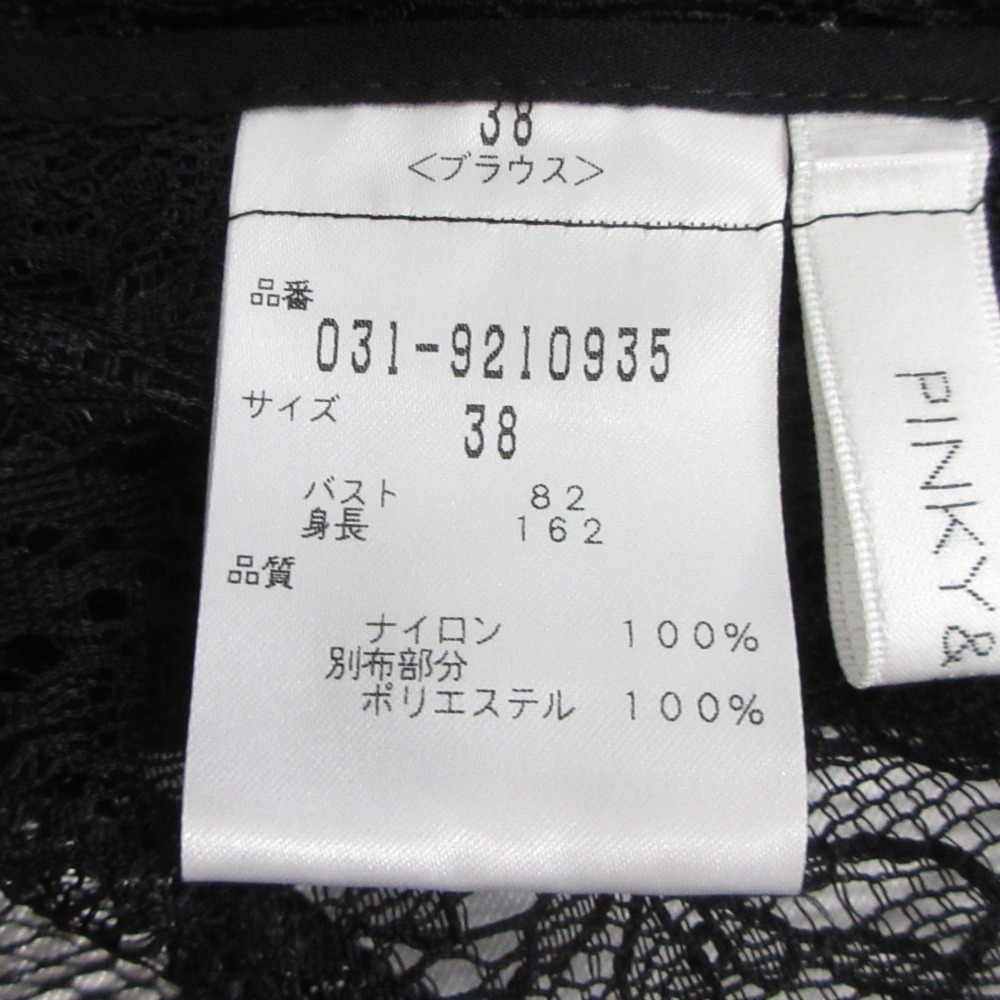美品 PINKY&DIANNE ピンキー&ダイアン ピンダイ レース ブラウス カットソー 長袖 03-9210935 サイズ38 黒 ブラック