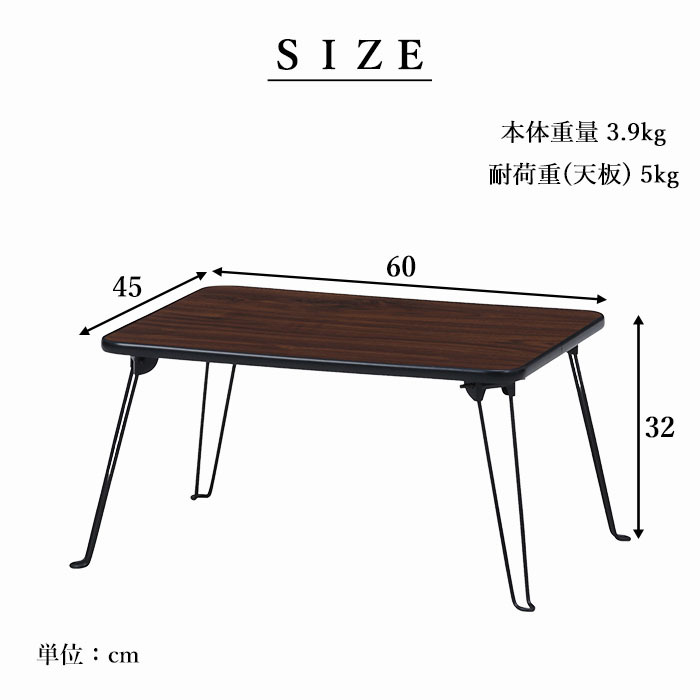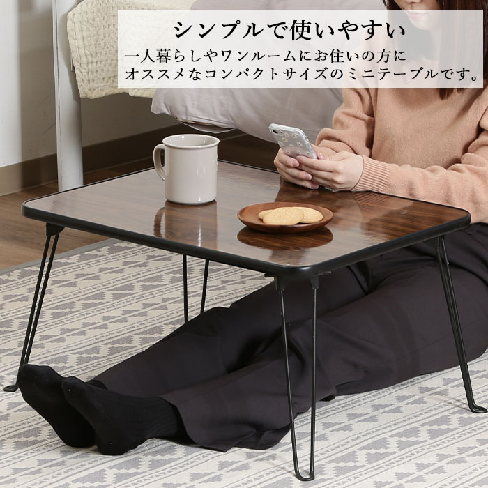 お部屋に馴染みやすいシンプルなデザインの折りたたみテーブル。