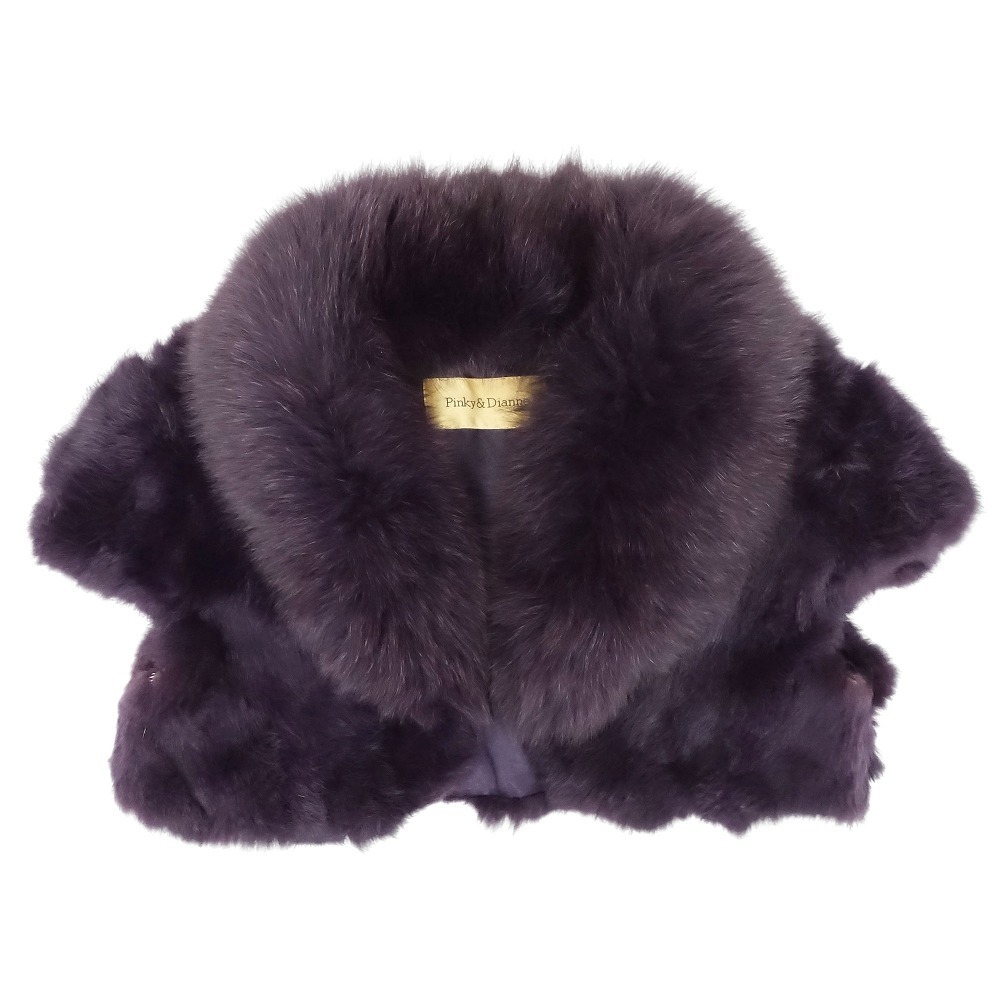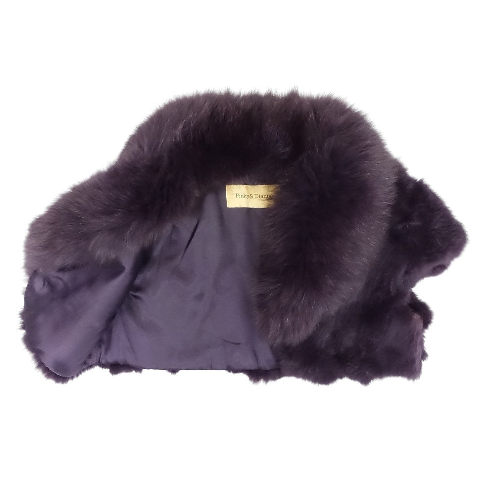 | 【Pinky&Dianne ピンキーアンドダイアン 毛皮 ショート丈 ジャケット 半袖 染めラビット ブルーフォックス 38 M 紫 レディース】 | |