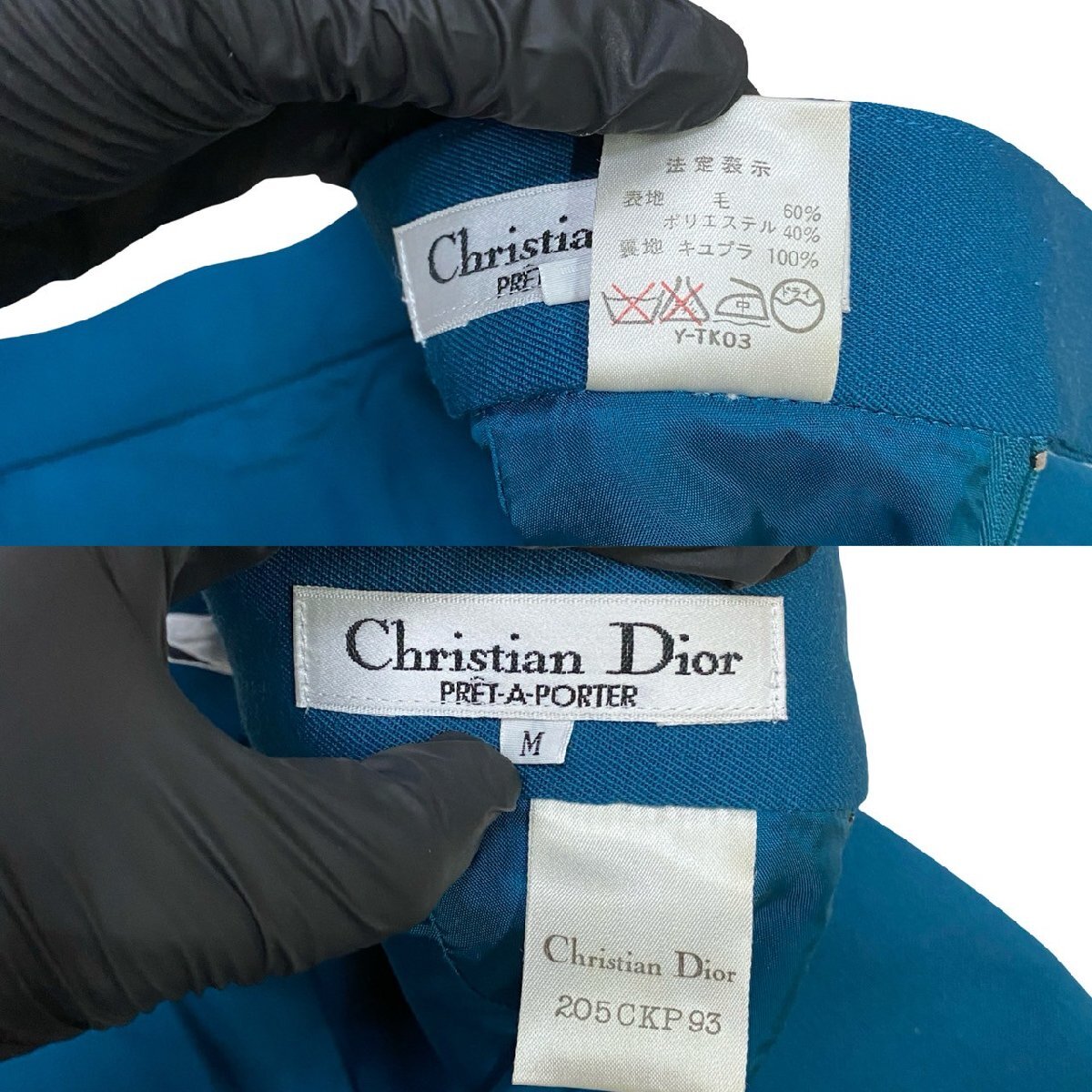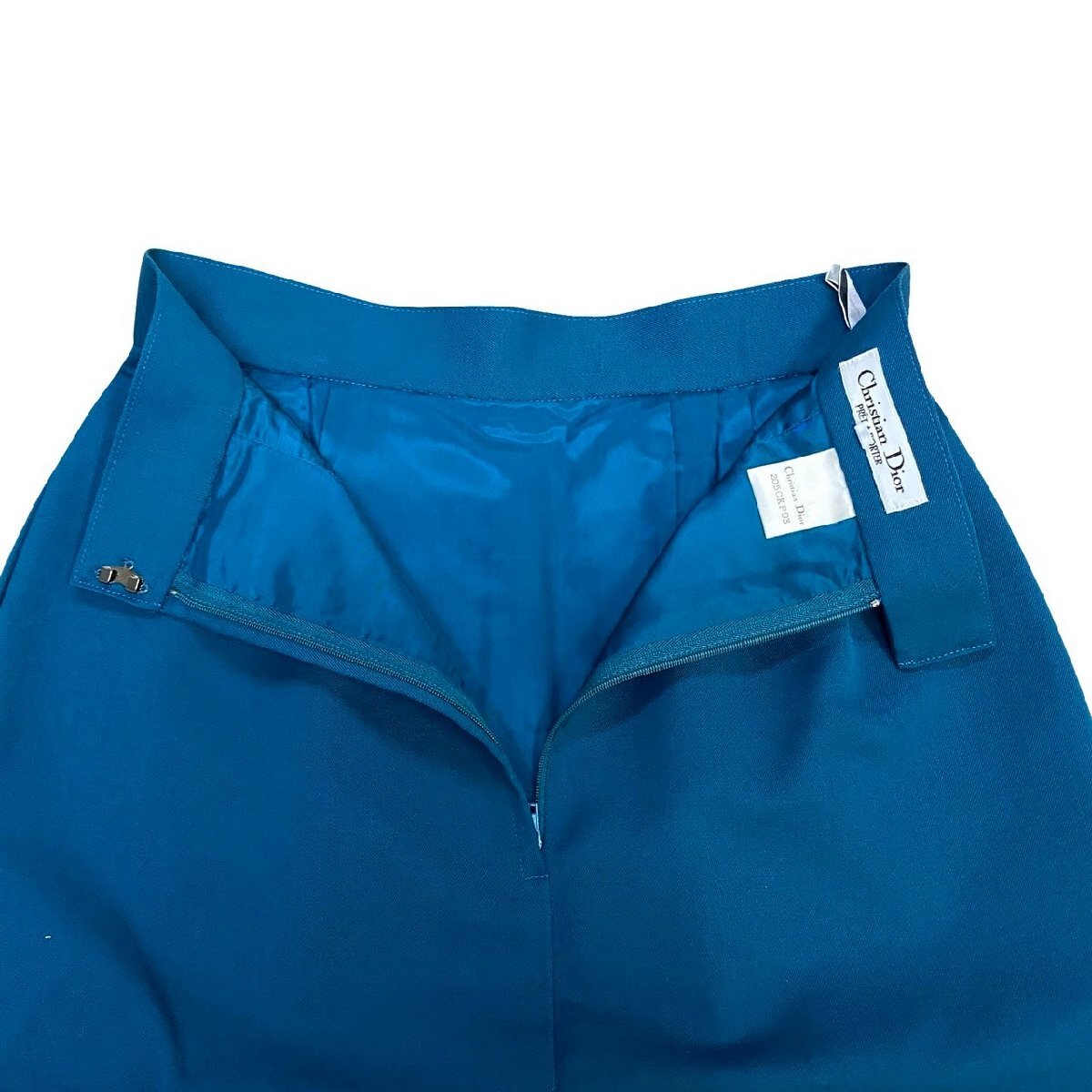 極 美品 Christian Dior クリスチャンディオール ヴィンテージ ウール タイト スカート Mサイズ レディース ターコイズブルー 098-3