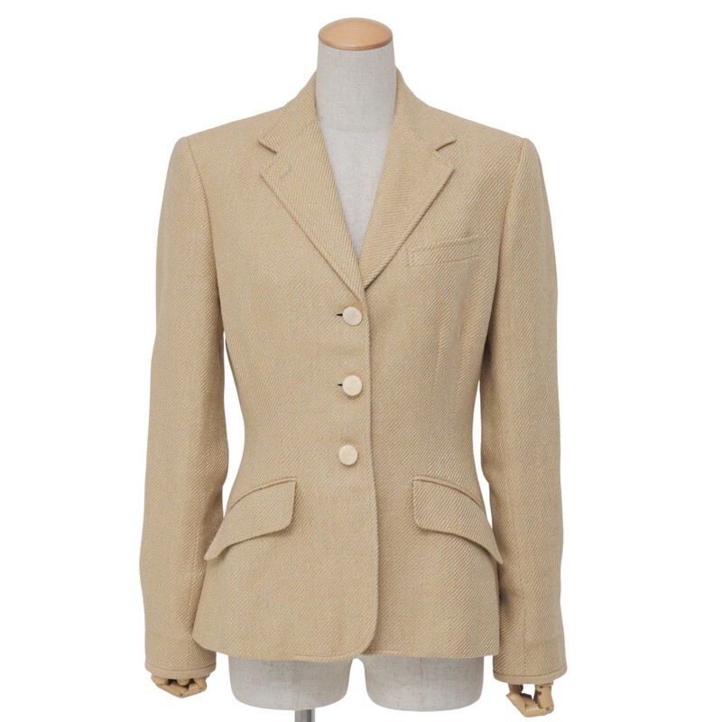 | GS2059●ラルフローレン/RALPH LAUREN*キツネボタン リネンシルク ウール ジャケット*麻*ブレザー*レディース サイズS*ベージュブラウン系 | |||