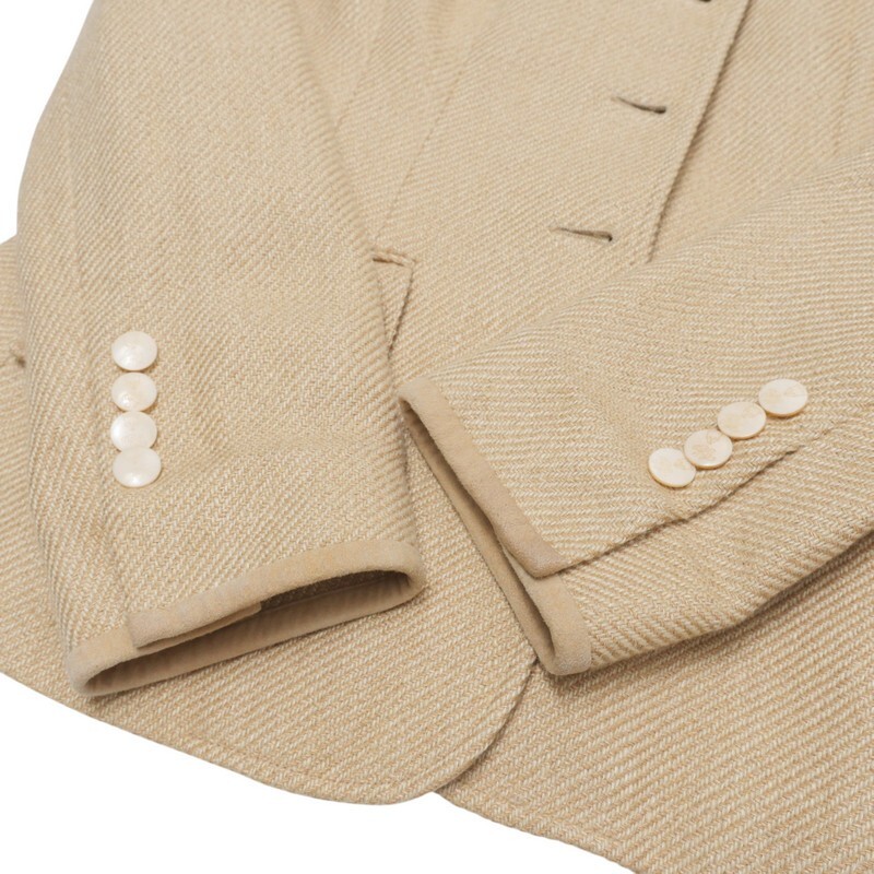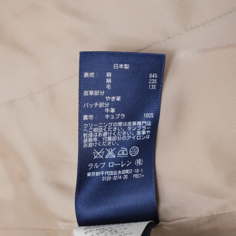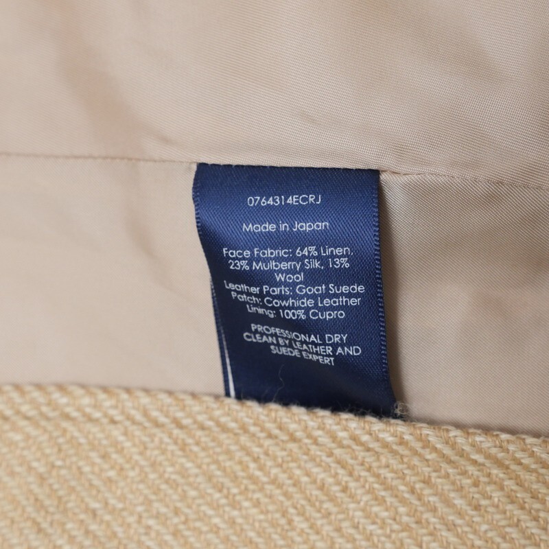 | 素材 | 表地 :麻64%、絹23%、毛13% 皮革部分 :やぎ革 パッチ部分:牛革 裏地 :キュプラ100% |