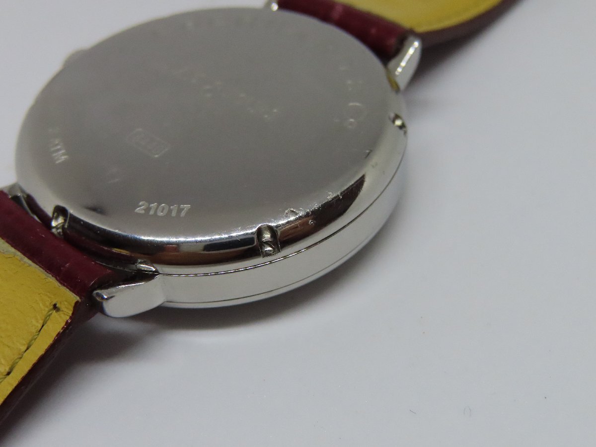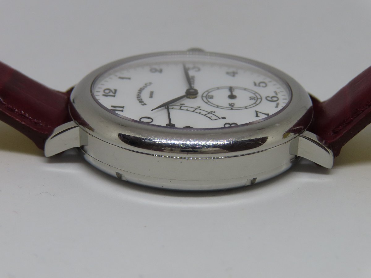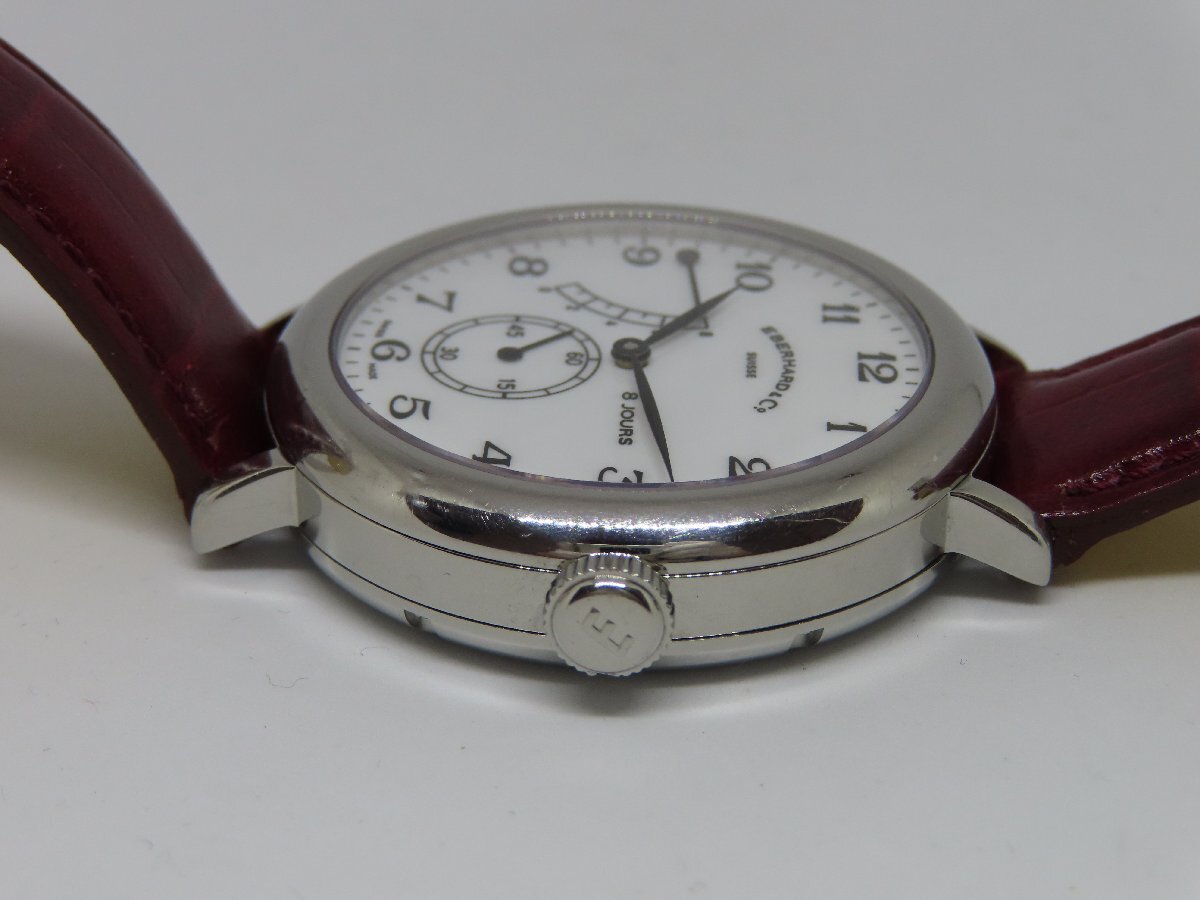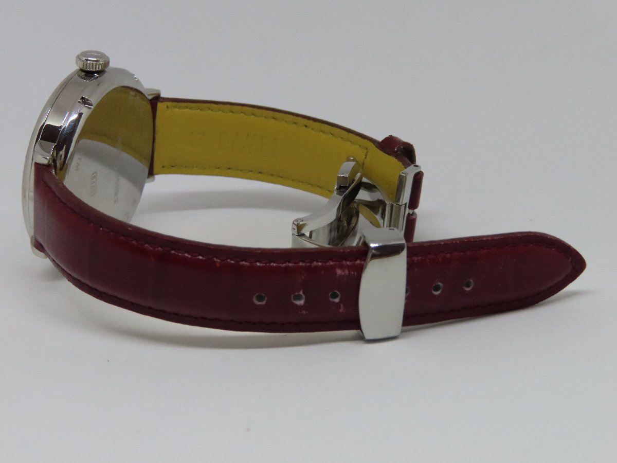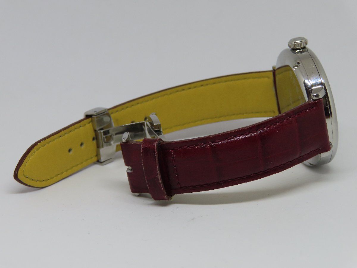 | 【素材】SS/革 【文字盤色】ホワイト 【機械】手巻き 【Ref.No】21017 【ケースサイズ】約40mm(リューズ除く) 【腕回り内寸】約19cmくらいまで対応可能 【動作】タイムグラファーで+2秒くらいで推移しています 【付属品】ありません |