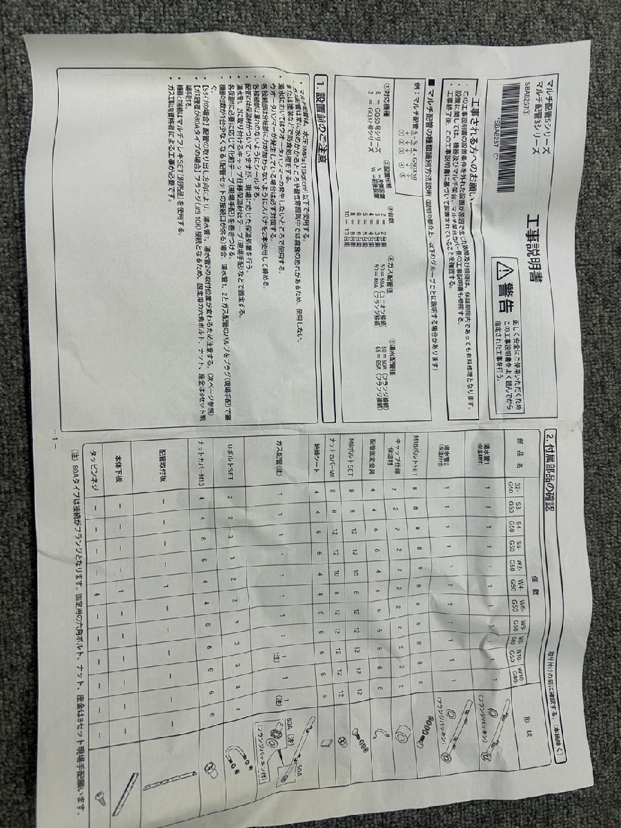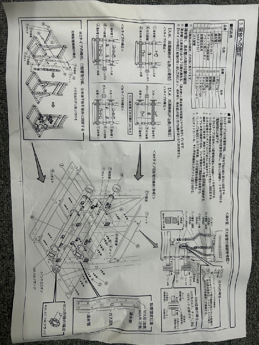 【メーカー】不明 【本体内容】 ●湯水管 2本 ●ガス配管1本 【部品内容】 ●M16ボルトSET 8個 ●キャップ仕様保温材 2個 ●配管固定金具 4個 ●M8ボルトSET 8個 ●ナットカバーM8 8個 ●絶縁シート 4枚 ●UボルトSET 2個 ●ナットカバーM10 4個 ●説明書 【状 態】未使用 =特記事項= ※長期倉庫で保管していた為、箱は無くこちらで梱包いたします。 ※大型で重量があるた為、お引取りを歓迎しております。 ※使い方などの詳細はこちらではお答え出来かねます。 ご理解ある方のみのご購入をお願いいたします。 ※配送は着払いにてお客様ご負担となります。 |