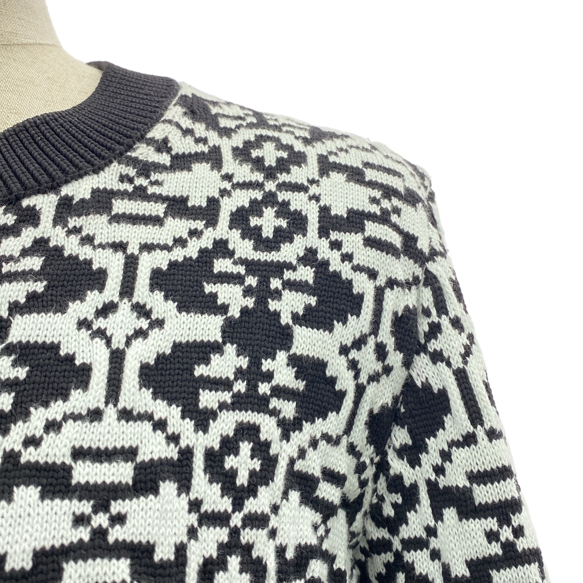 【美品】 COMME des GARCONS / コムデギャルソン | 総柄 ジャガード バックオープン カットアウト ニット セーター / 裏地付き | ホワイト/ブラック | レディース