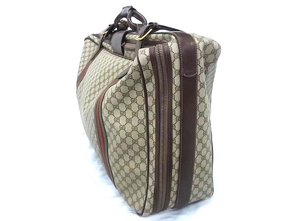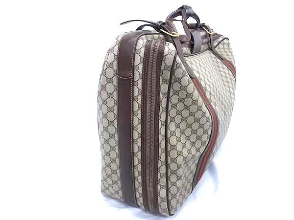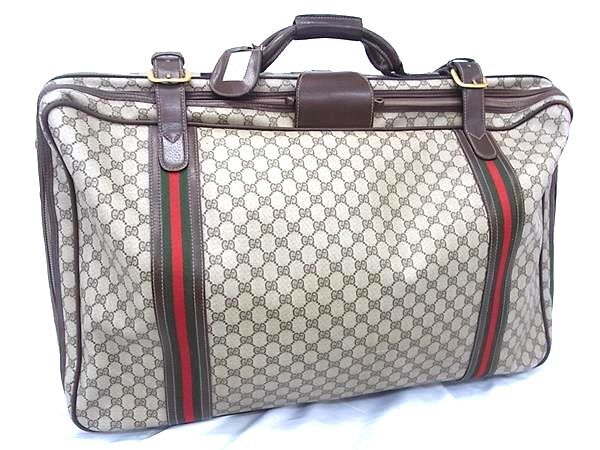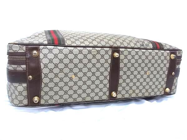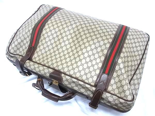 1円 GUCCI グッチ オールドグッチ ヴィンテージ シェリーライン GG柄 PVC×レザー トラベルバッグ 旅行かばん ブラウン系 FT1436