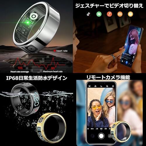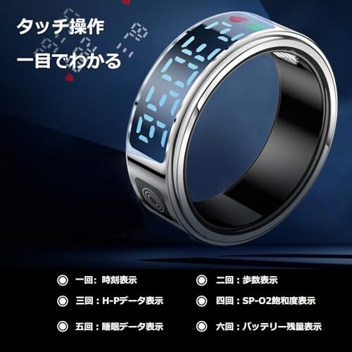 2025 スマートリング スマート指輪 フィットネスリング メンズ 指輪 レディーズ 体調管理 H-R/SP-O2飽和度/睡眠データ 活動量計 歩数計/消費カロリー/距離 防水 ジェスチャーコントロール IOS/Android対応 LED画面 付き