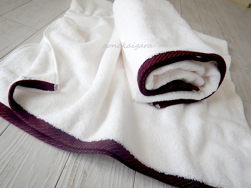 新品■今治産■高級綿■無撚糸■ふわふわ■超■柔らか■ボリューミー■バスタオル2枚■オフホワイト×ボルドー