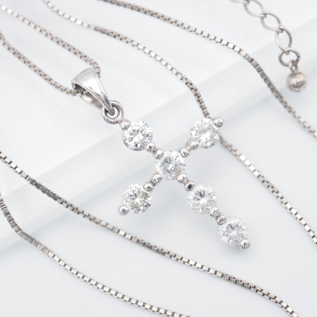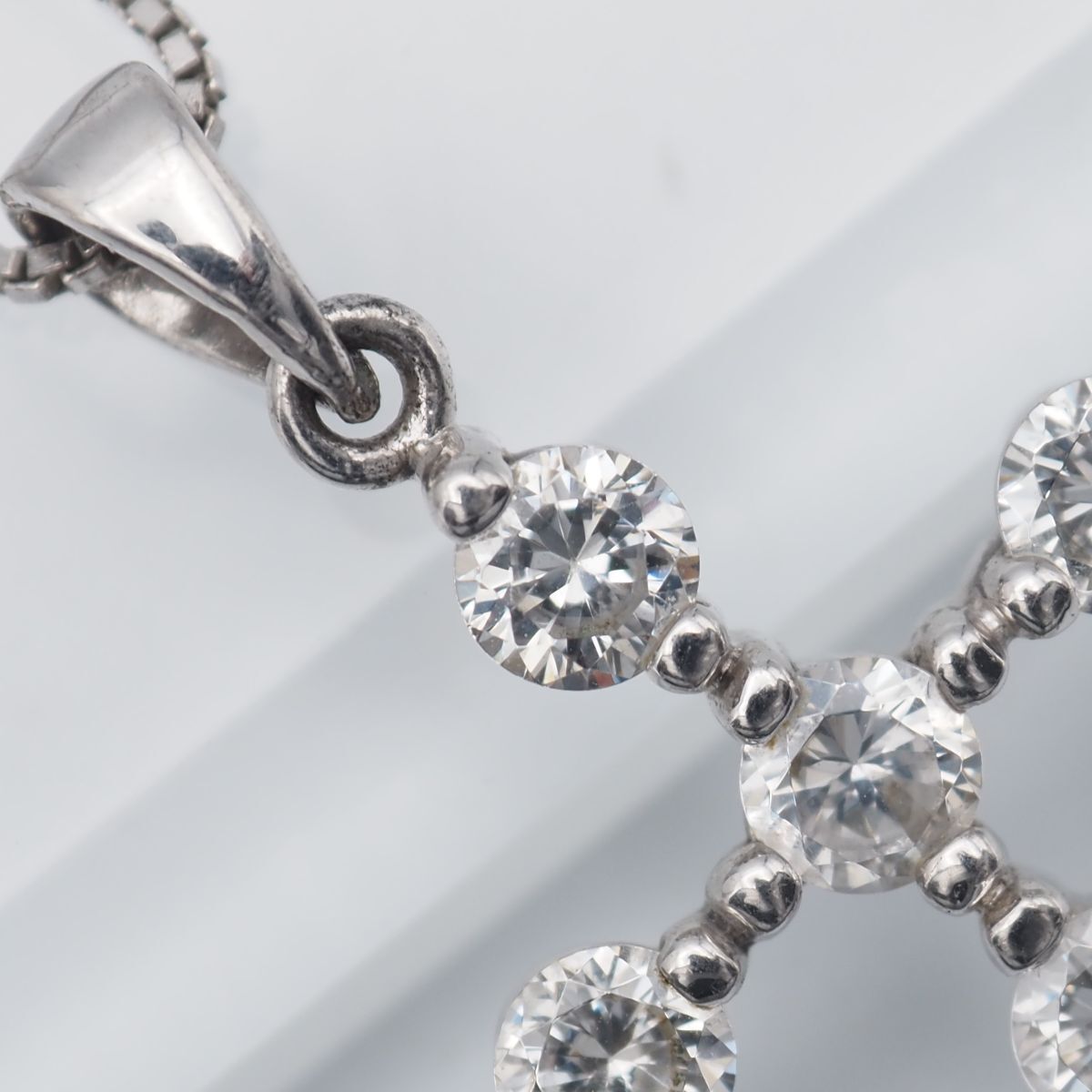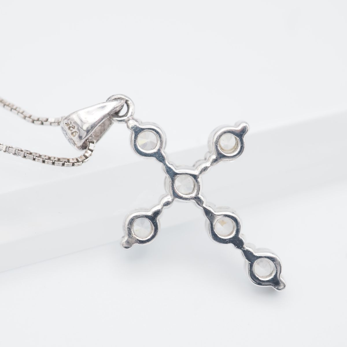 F523 ダイヤモンド風 925刻印 ペンダント ネックレス クロス デザイン シルバー