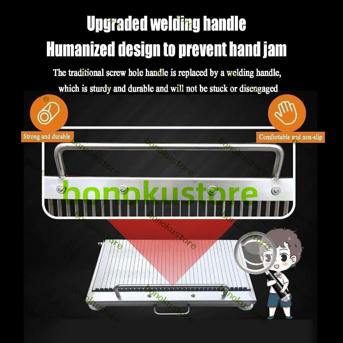 名称:ステンレス製寿司包丁 材質:ステンレススチール スライス厚さ:6mm 重量:3.7kg パッケージ内容: ハンドヘルドデバイス x 1