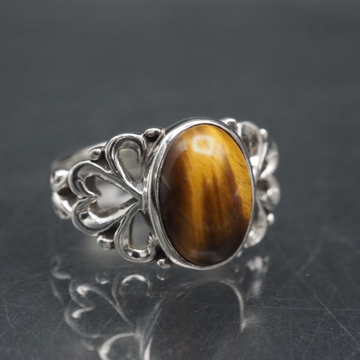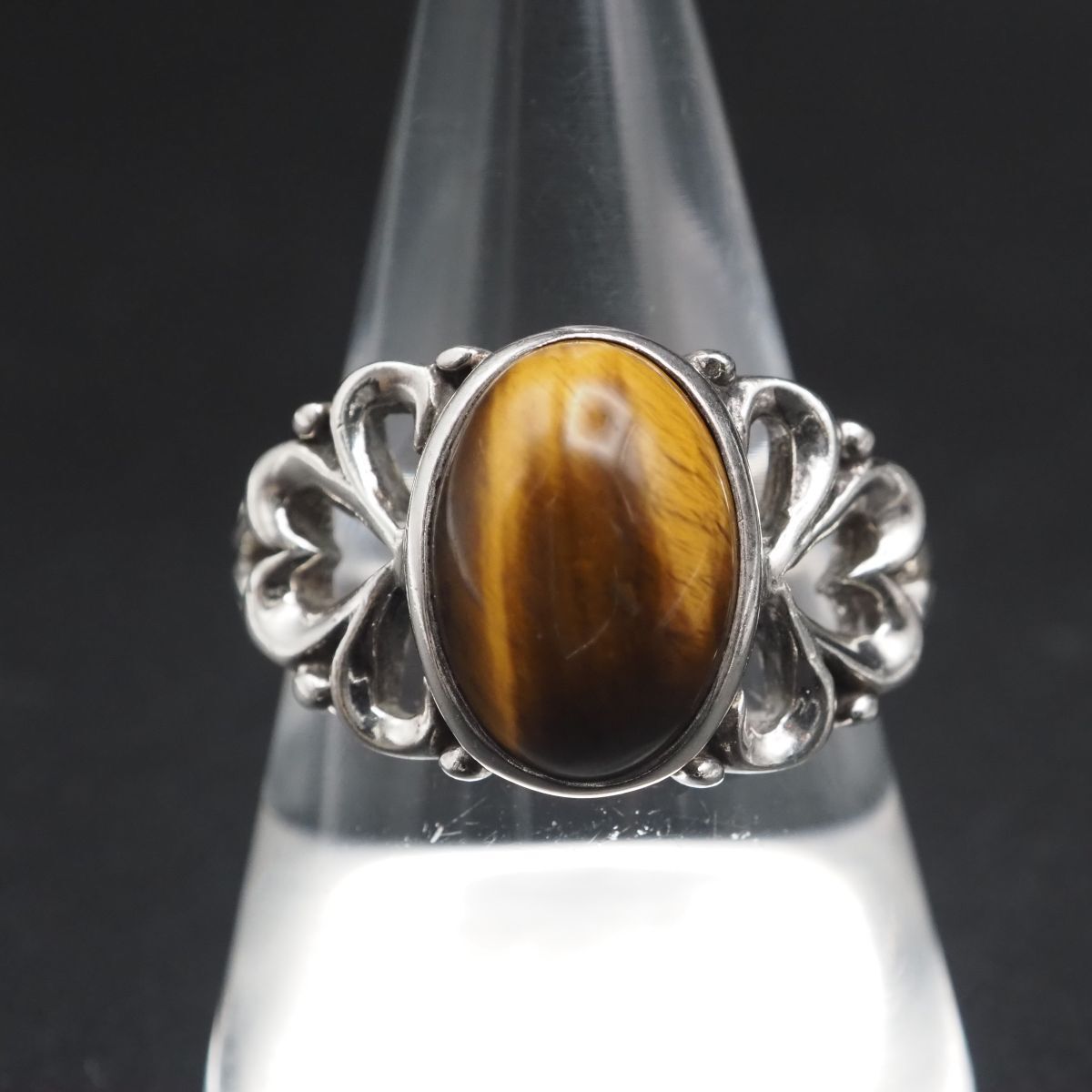 F730 タイガーアイ STM 925刻印 リング デザイン シルバー 指輪 ヴィンテージ 21号