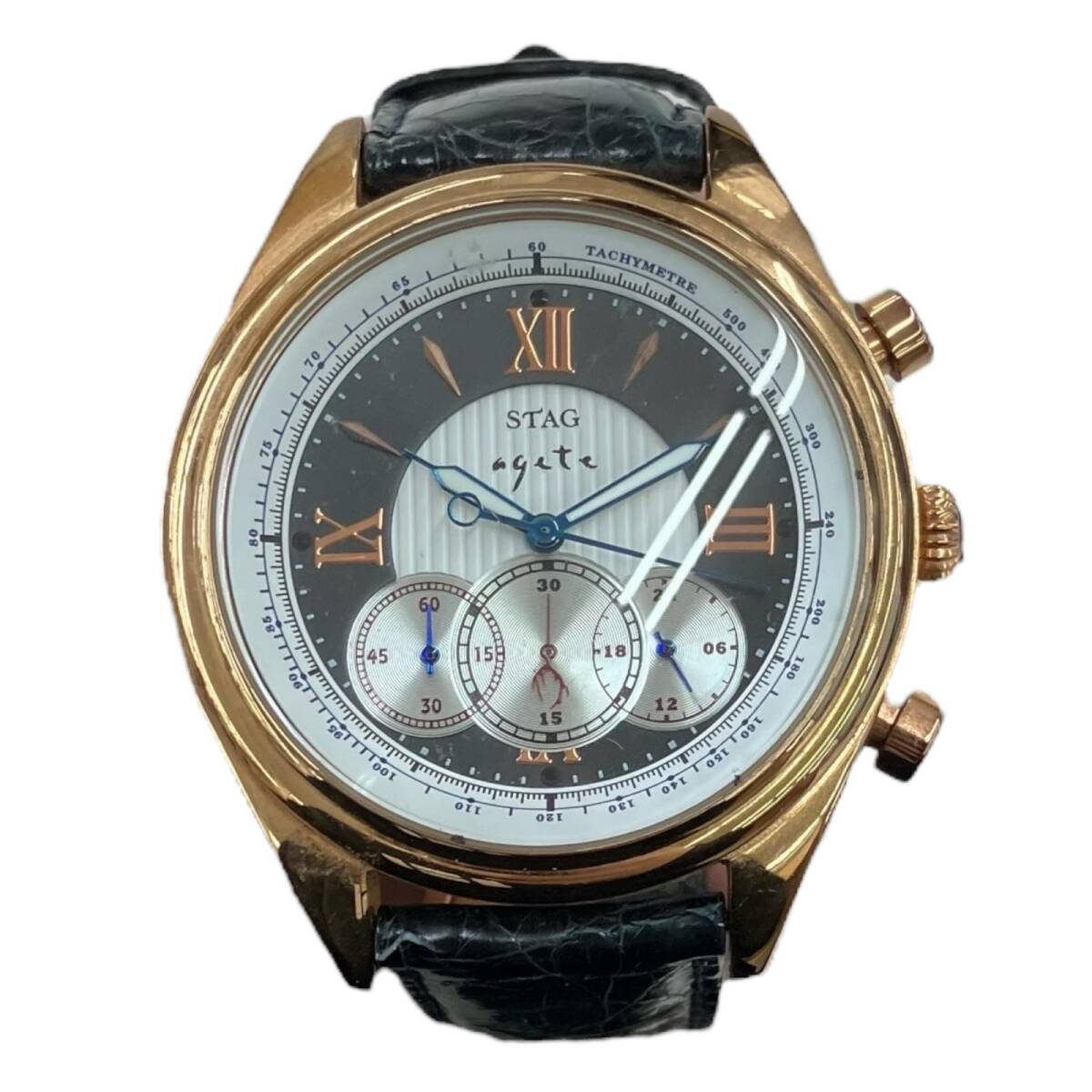 186000 現状品 agete アガット 手巻き時計 ブラック/ゴールド