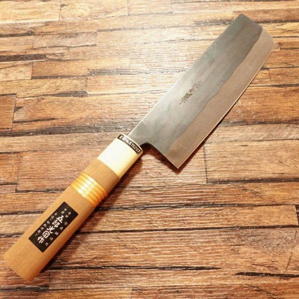 五郎光圀 菜切包丁 研ぎ済 黒打ち 菜切り 五郎光圀作 安来鋼 未使用保管品 165mm