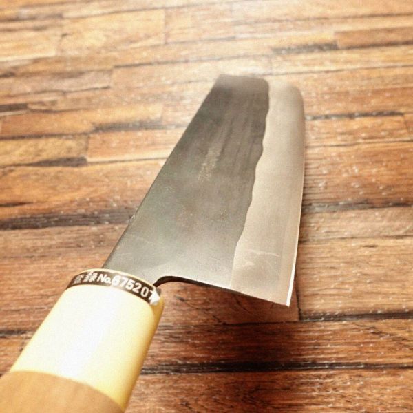 未使用のキレイな状態です。保管期間によってか多少切れ味が落ちている感じがありましたので、研ぎ傷をできるだけつけないように丁寧に研ぎを入れております。保管時の汚れや小傷などはご容赦ください。