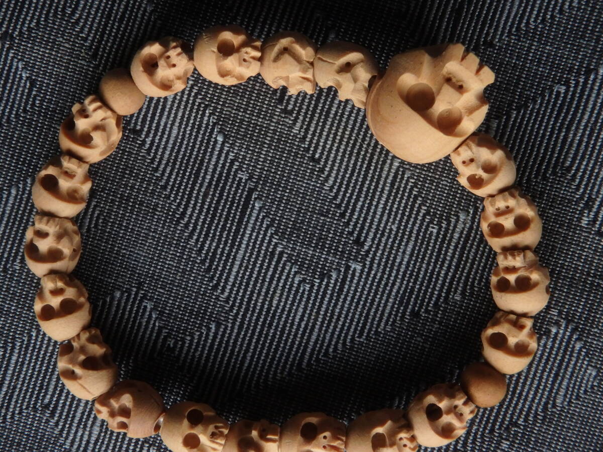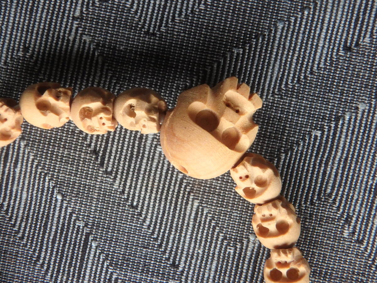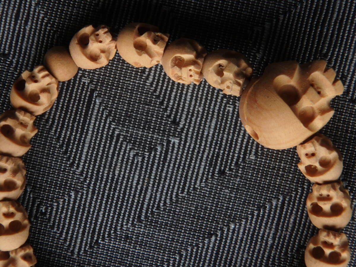 天然珍品大粒黄楊木透彫腕輪念珠 「髑髏彫」