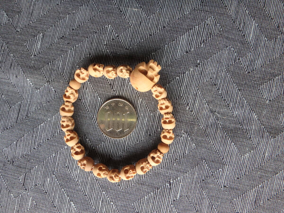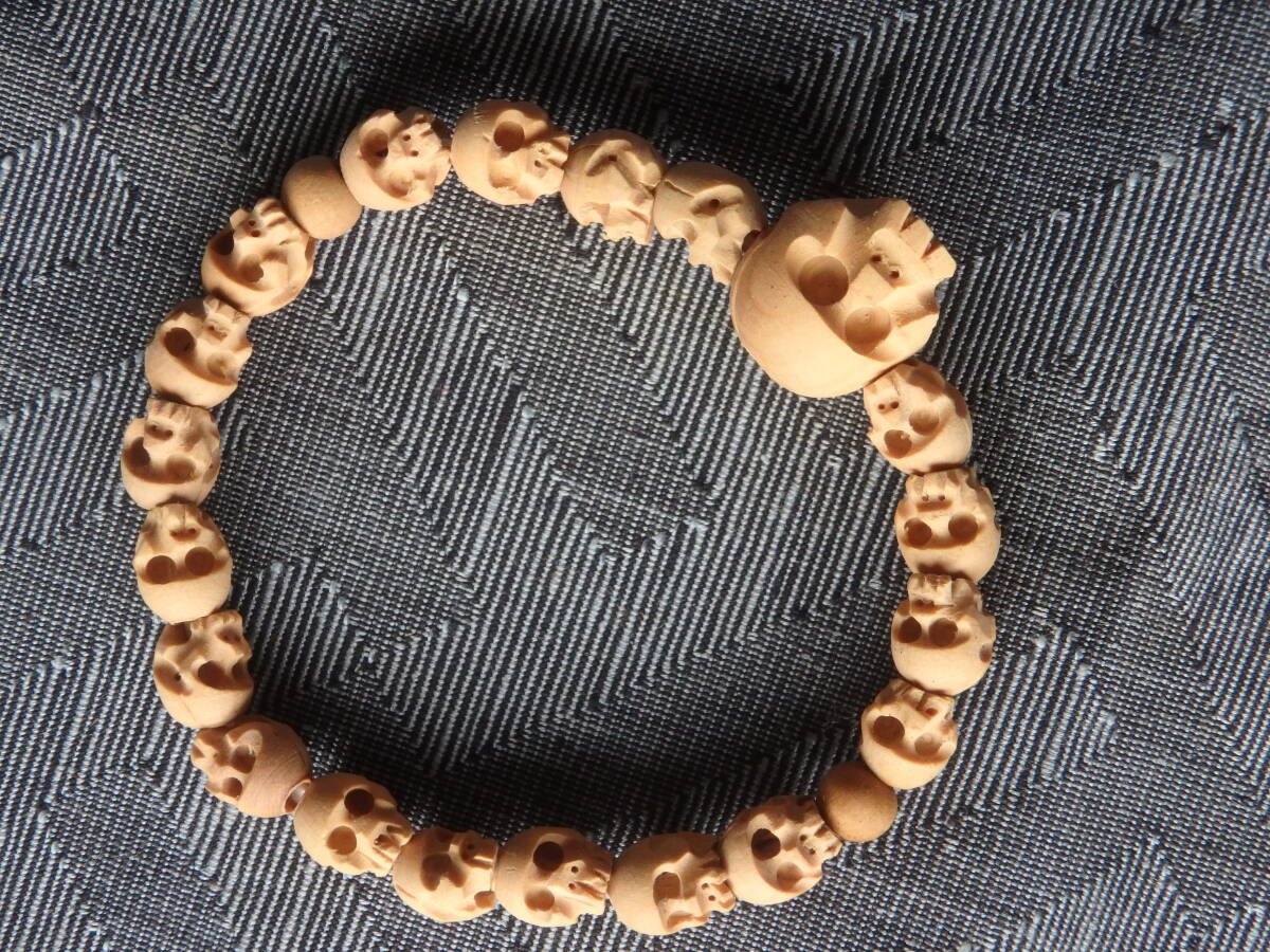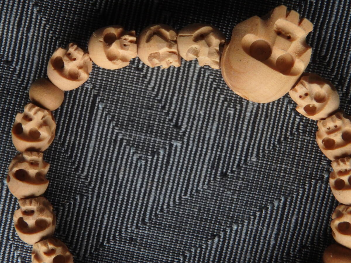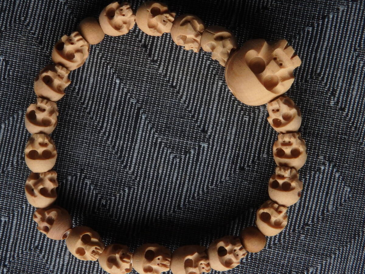 天然珍品大粒黄楊木透彫腕輪念珠 「髑髏彫」