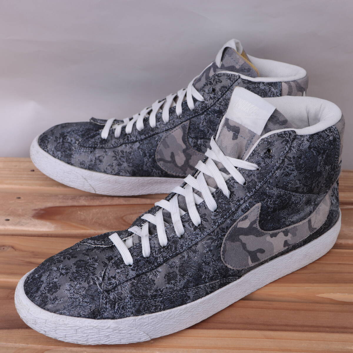 z2170 ナイキ ブレーザーミッドプレミアム US9.5 27.5cm/グレー系 柄 白 NIKE BLAZER MID PRM VNTG ブレザー メンズ スニーカー 中古
