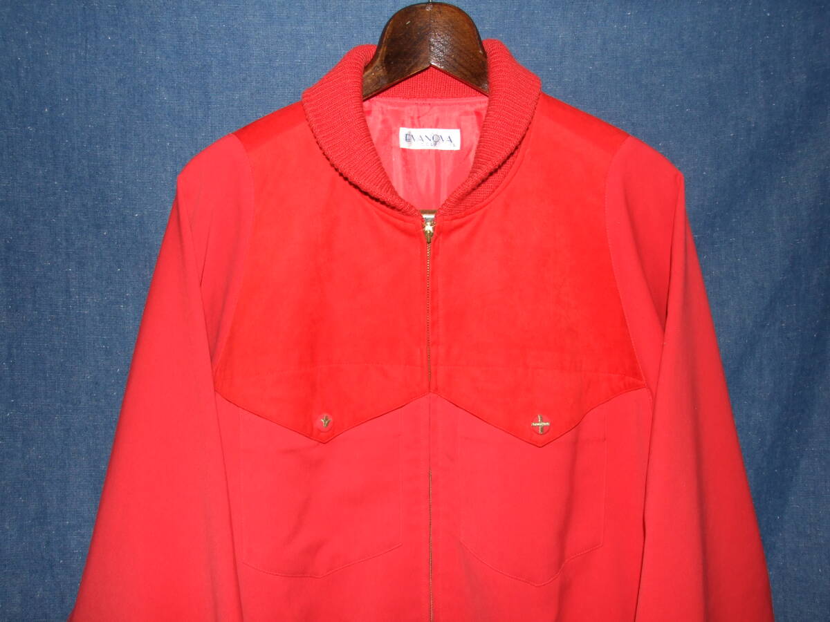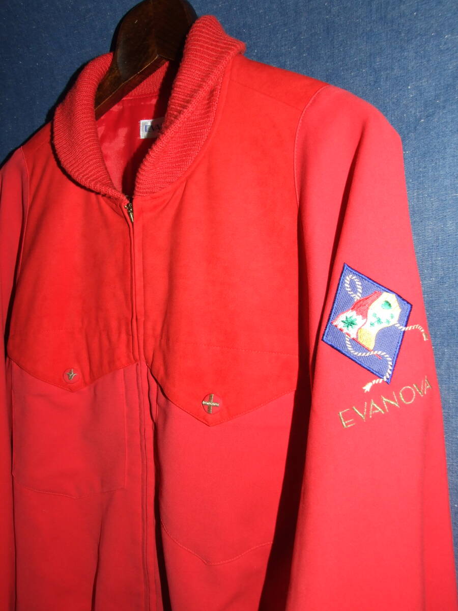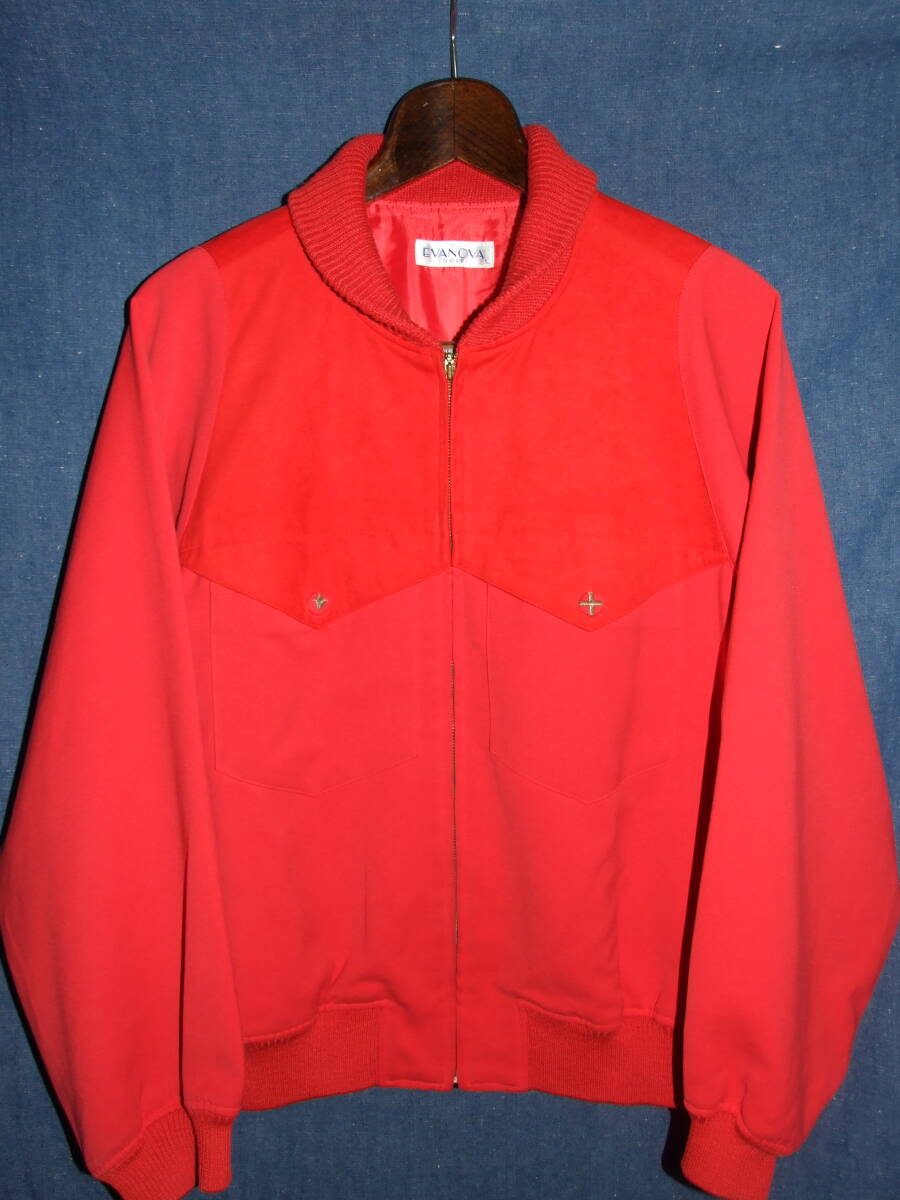 ヴィンテージEVANOVAスポーツジャケット、オールド古着です。カラーはレッド、表記サイズはLになります。実寸着丈59/裄丈82/脇から袖口45/身幅61程でした。胸のポケットフラップのディティールなどもとても凝っています。オールド古着になりますのである程度の使用感ございますが、着用を妨げるような大きなダメージは特にございませんので、気になる方がいらっしゃればどなたか使って下さい。