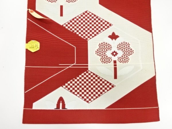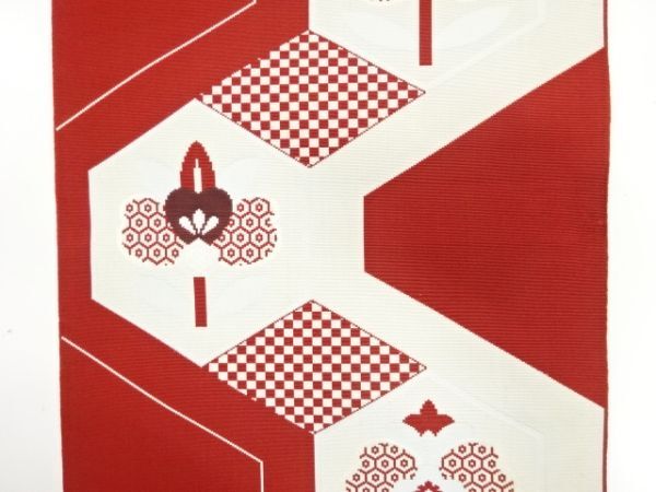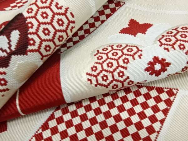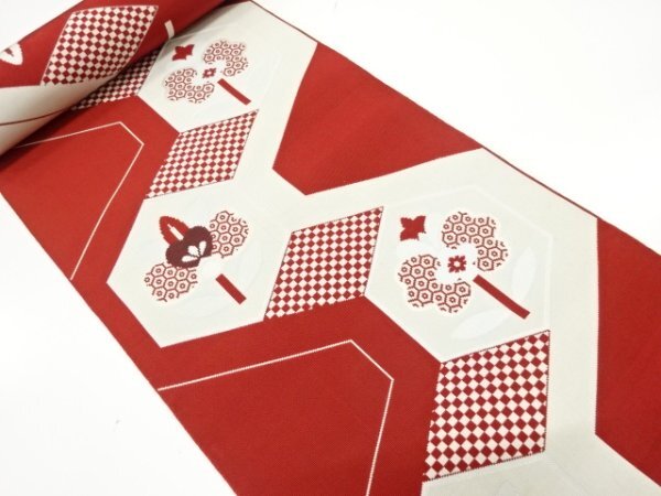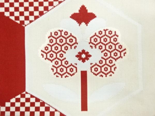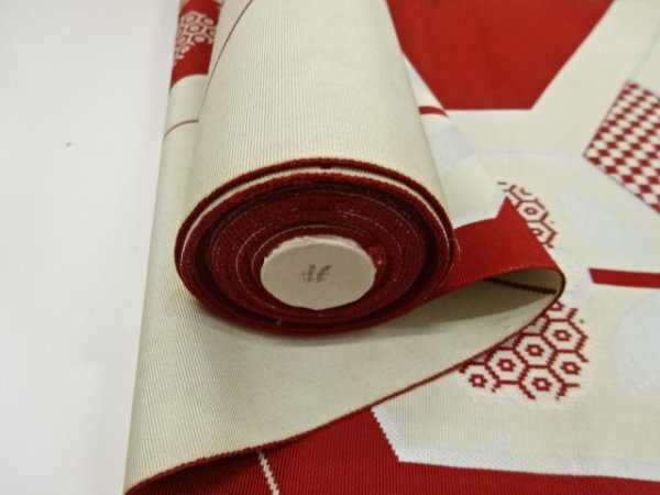 ys7531905; 亀甲に花模様織出し八寸帯地反物【アンティーク】【着】