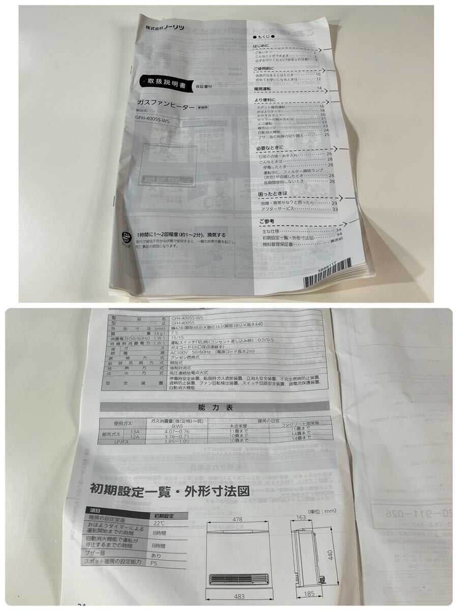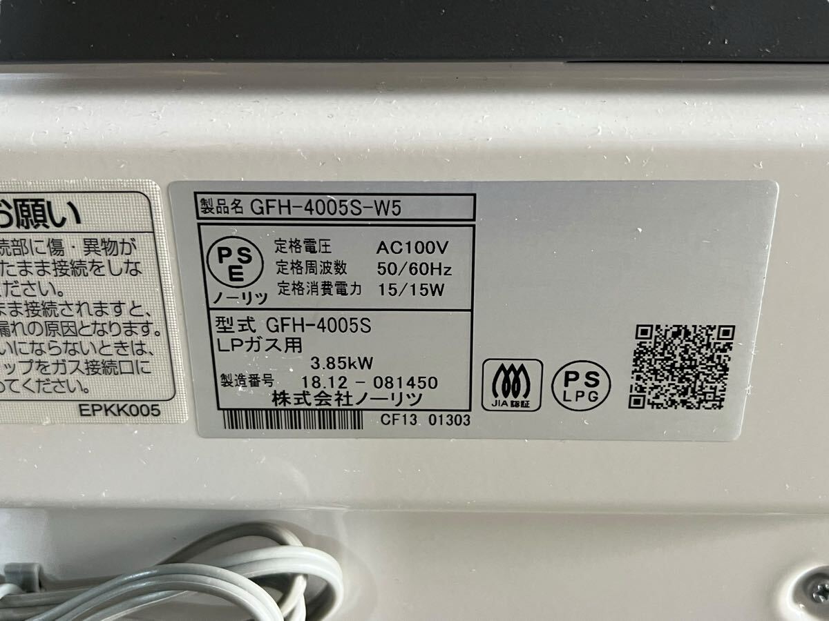 ◆通電確認済み NORITZ ノーリツ ガスファンヒーター GFH-4005S-W5 LPガス プロパンガス 暖房器具 ヒーター 中古品 現状品 管理KA432