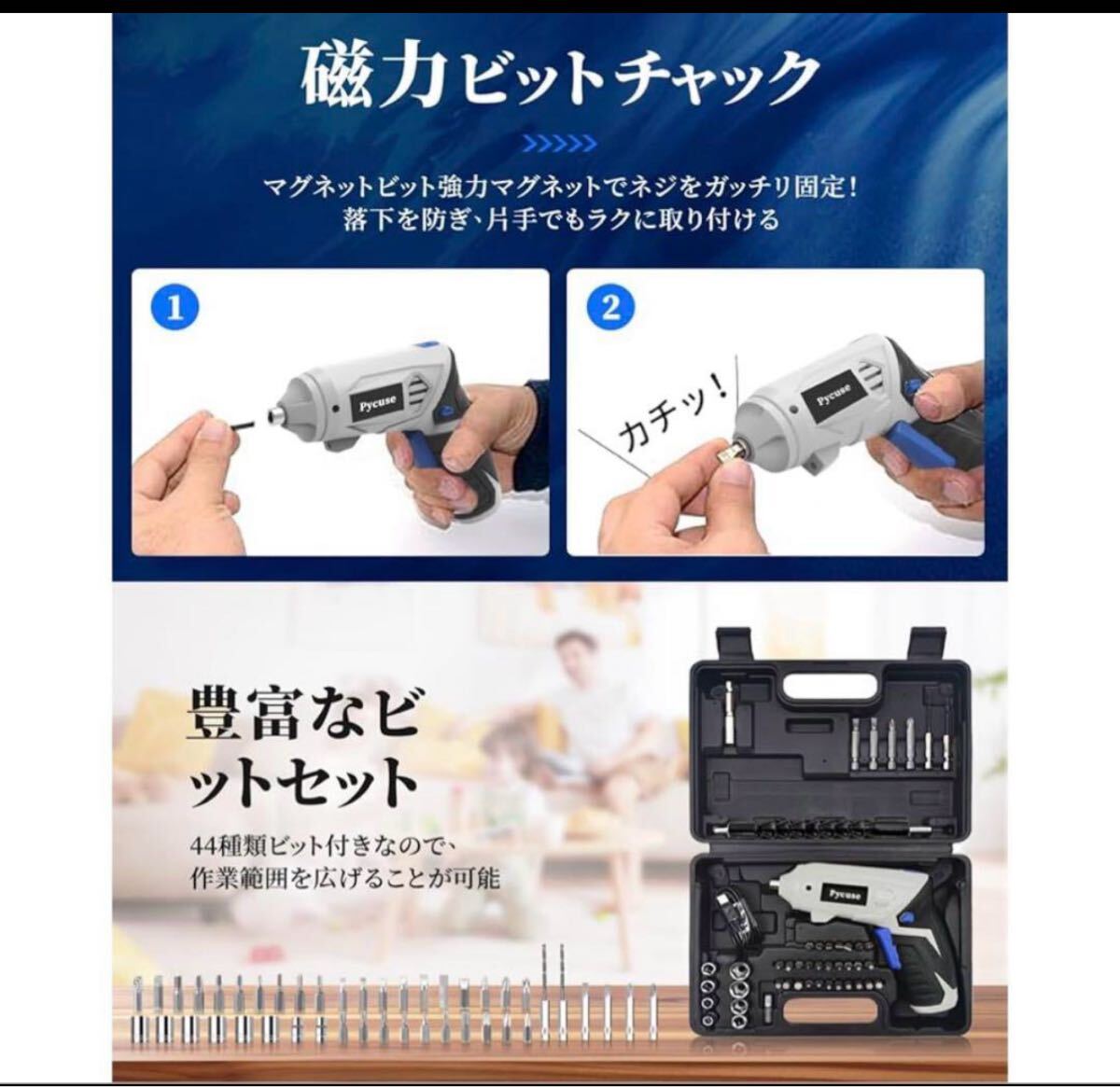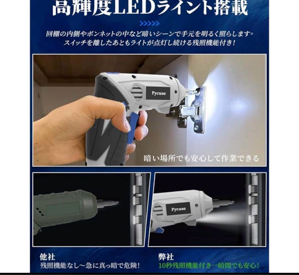 USB充電式電動ドライバーはバッテリー交換不要で、繰り返し充電できます。4.5V・3000mAh超大容量バッテリー内蔵しており、航続時間は約1時間以上です!
