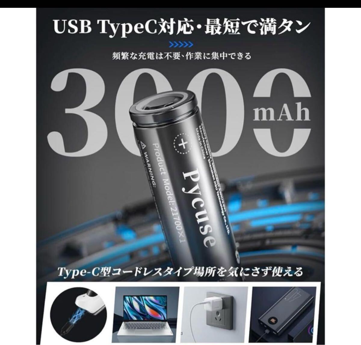 【USB Type-C充電式・4.5V 3000mAh大容量バッテリー】