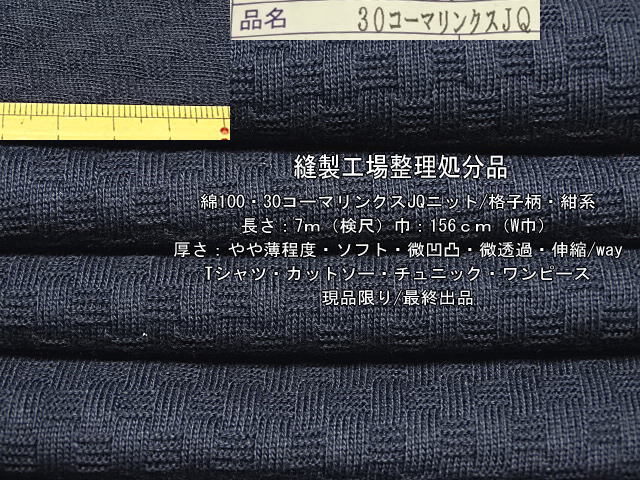 綿100 30コーマリンクスJQニット 格子柄 やや薄 ソフト 紺系 7m | |