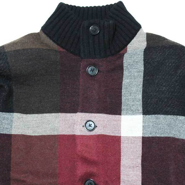 新品 BLACK LABEL CRESTBRIDGE パネルCBチェック ニットブルゾン ウール混 ハイネックカーディガン