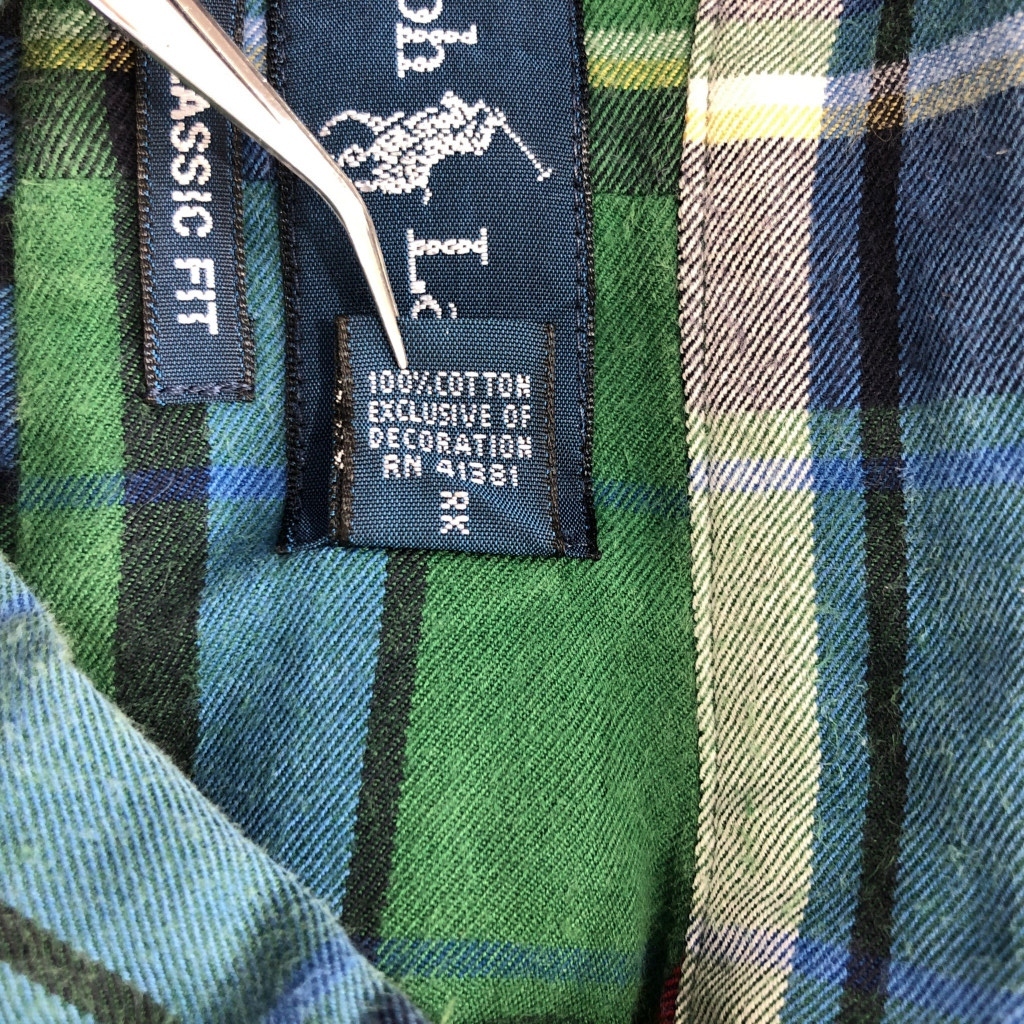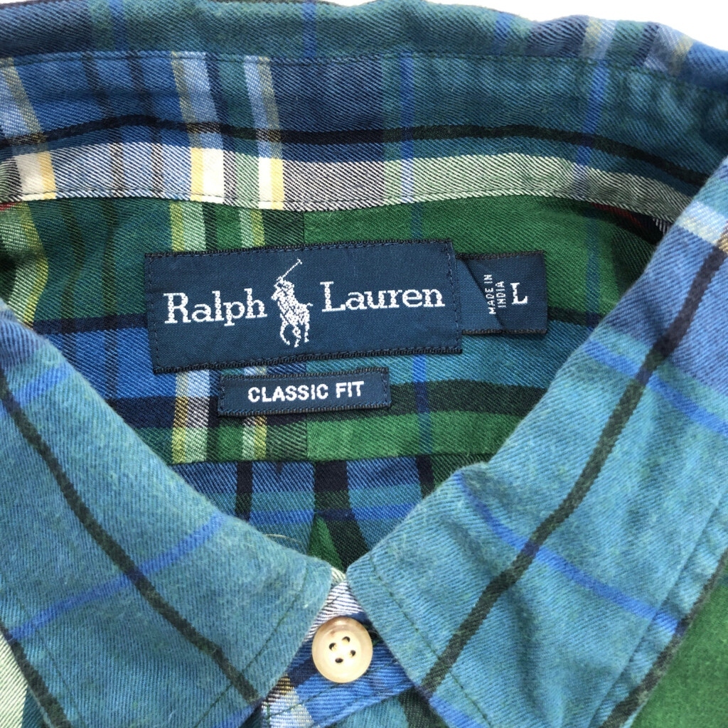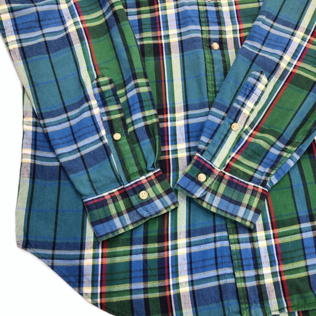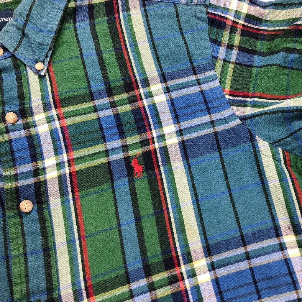 【商品管理番号】 V2683 【ブランド】 RALPH LAUREN/ラルフローレン 【サイズ】 L 【実寸サイズ】 肩幅:約51cm 着丈:約81cm 身幅:約65cm 袖丈:約65cm 【主な素材】 表地 : コットン 【色】 グリーン 【仕様】 00年代 ボタンダウン チェック 【状態】 |