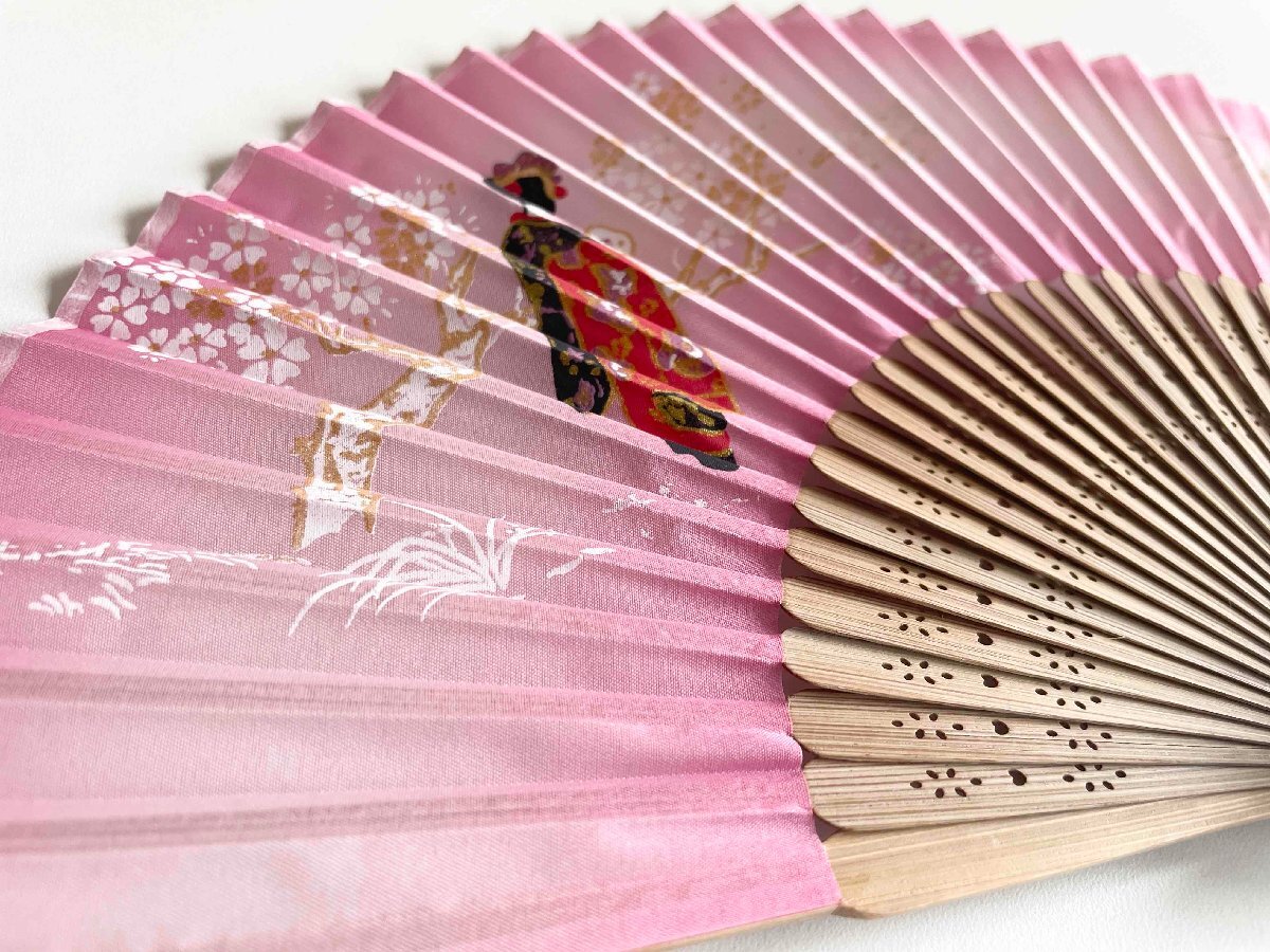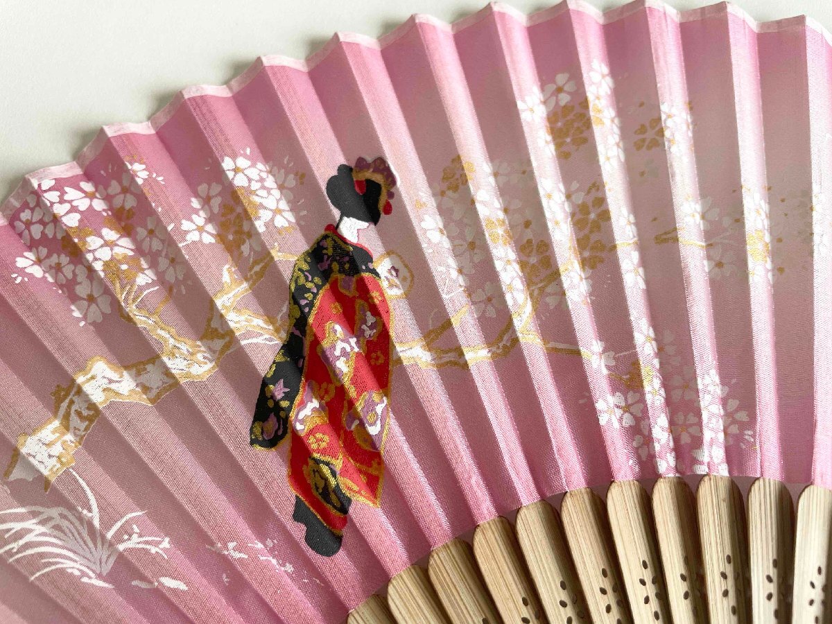 可愛らしい舞妓さんのイラストに和の趣を楽しめる扇子です