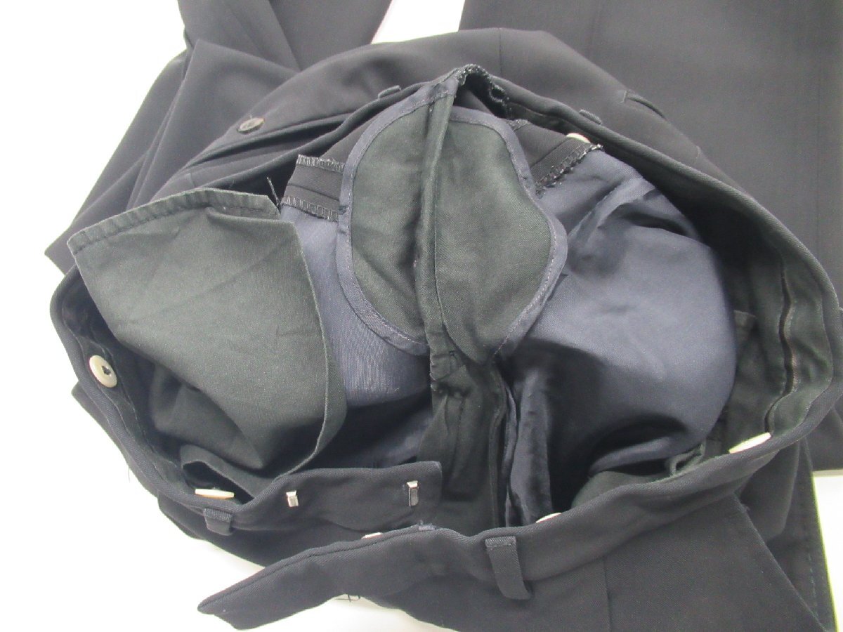 また、パンツ内側に多くスレが見られ、ジャケットの内側に社外縫製跡がございます。