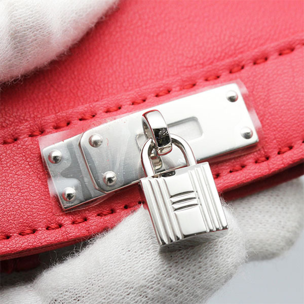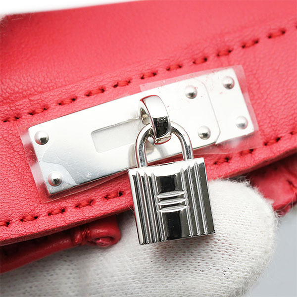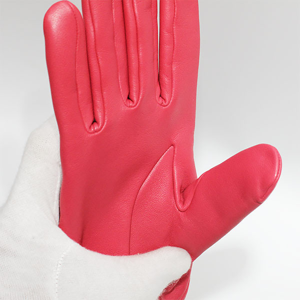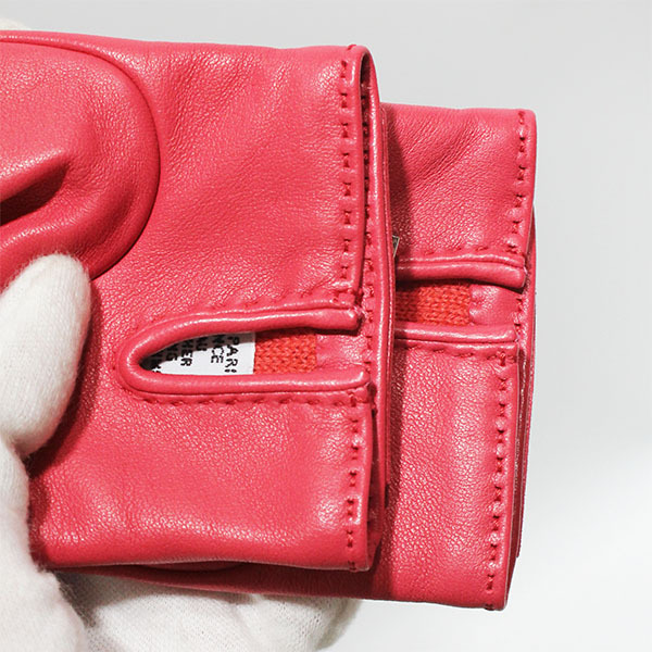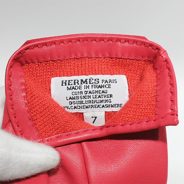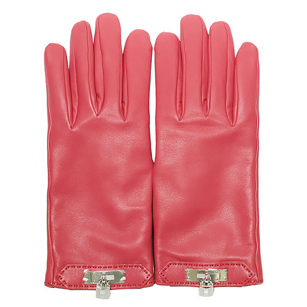美品 エルメス HERMES ケリー カデナチャーム グローブ 手袋 サイズ7 ピンク ブーゲンビリア(推定) ラムレザー カシミア 女性 レディース