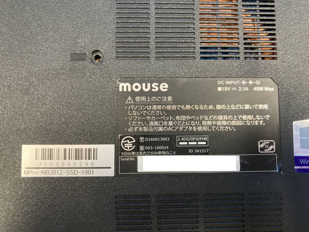 【i7第8世代】mouse MPro-NB391Z-SSD-1901/Core i7-8550U/メモリなし/HDDなし/13.3型/カメラ/1920× 1080/ジャンク品(NJ145)